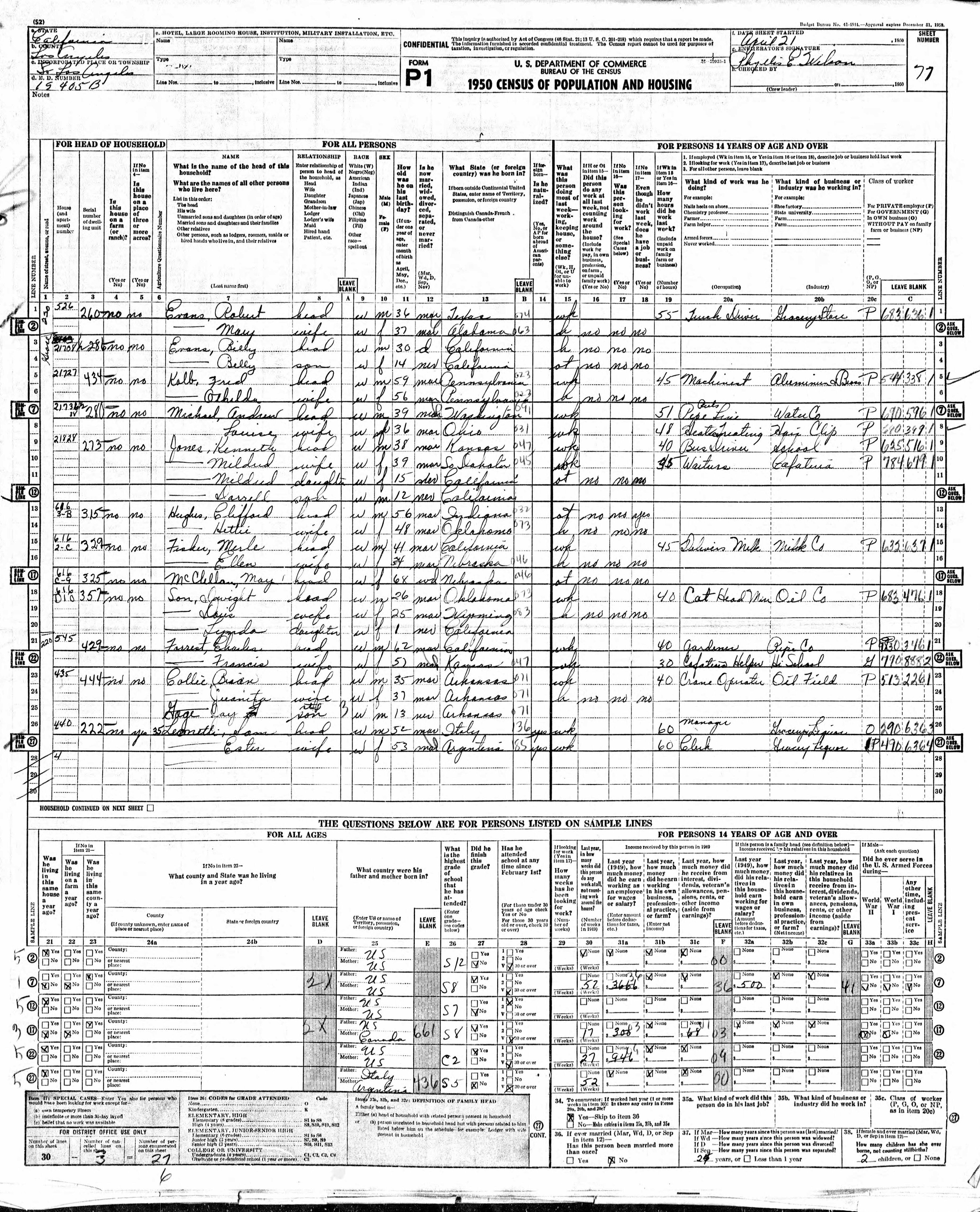 Leonetti Family 1950 Federal Census California, Lines 26-27