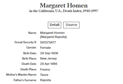 Margaret Rapolla was born on September 29, 1908 in New Jersey, USA. She and