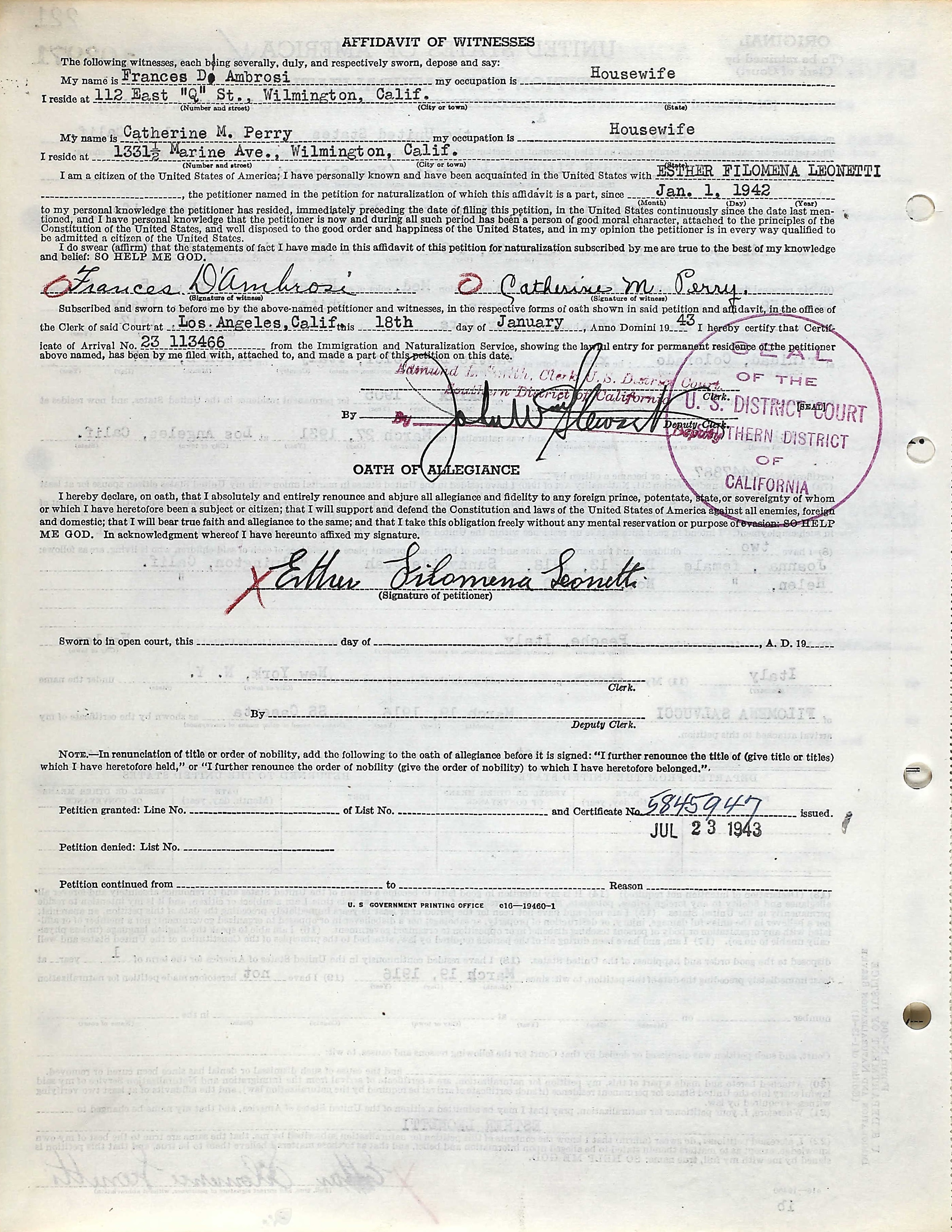 Helen Leonetti were married on October 12, 1939 in Wilimington, Los Angeles, California, USA. He died.
