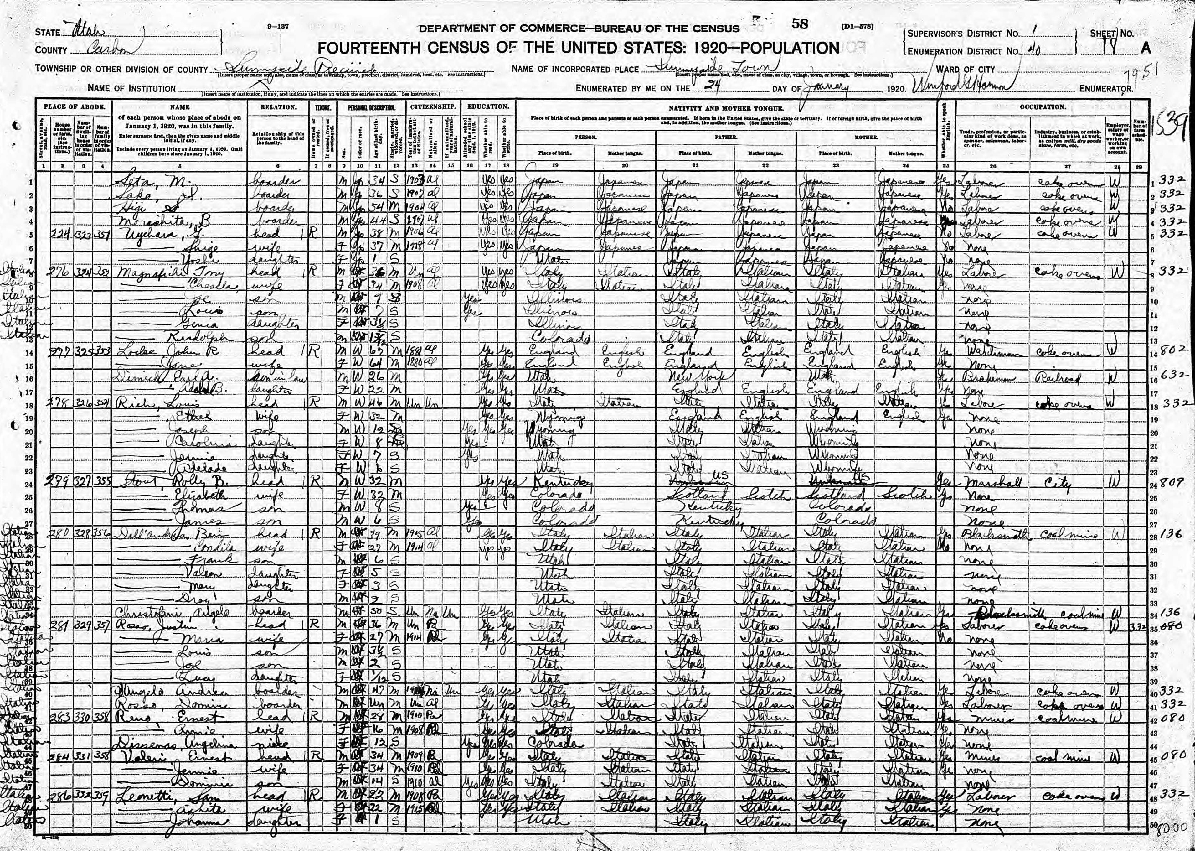 Leonetti Family 1920 Federal Census Utah, Lines 48-50