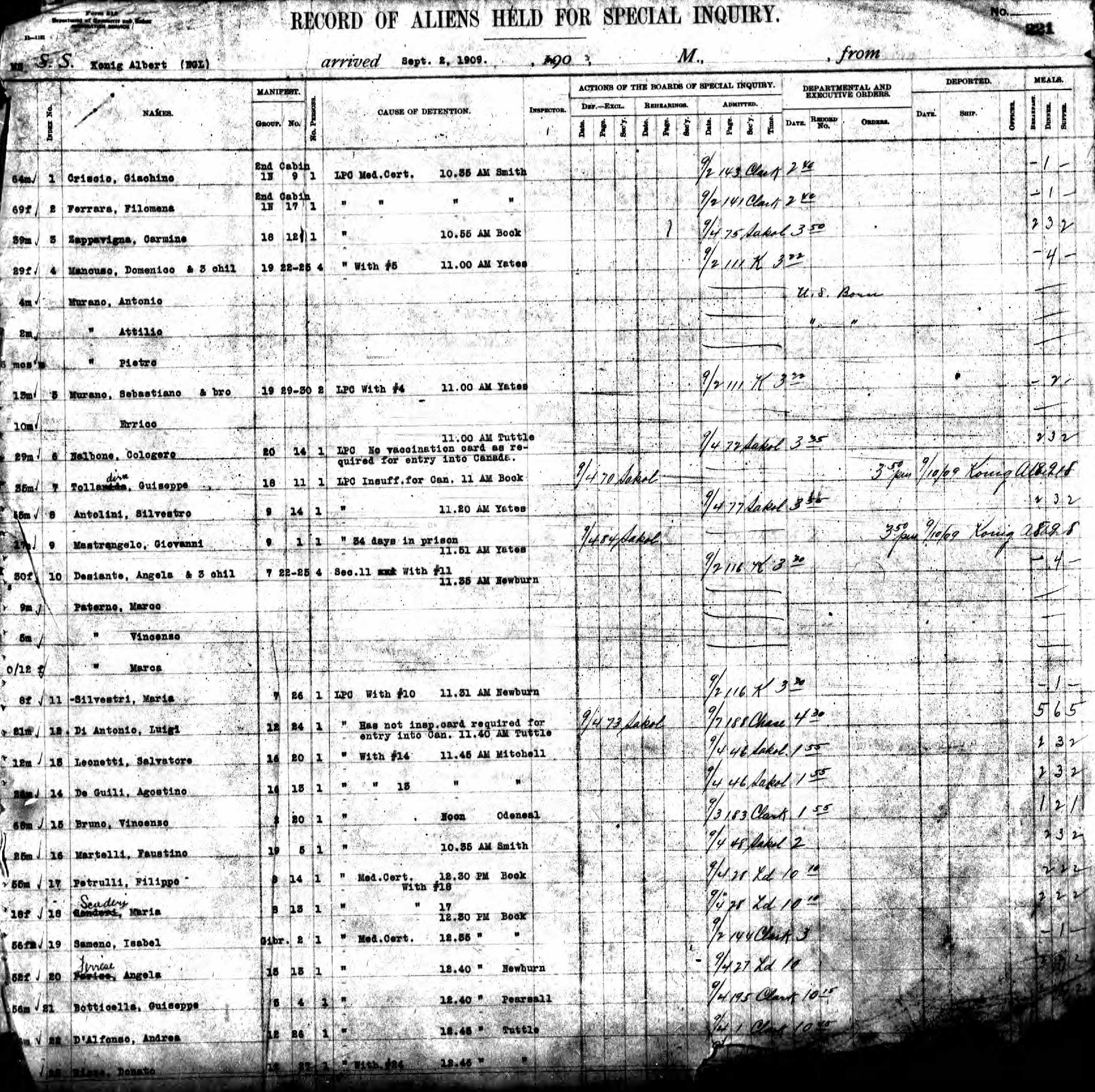 Salvatore Leonetti 1909 Ship Detained Manifest