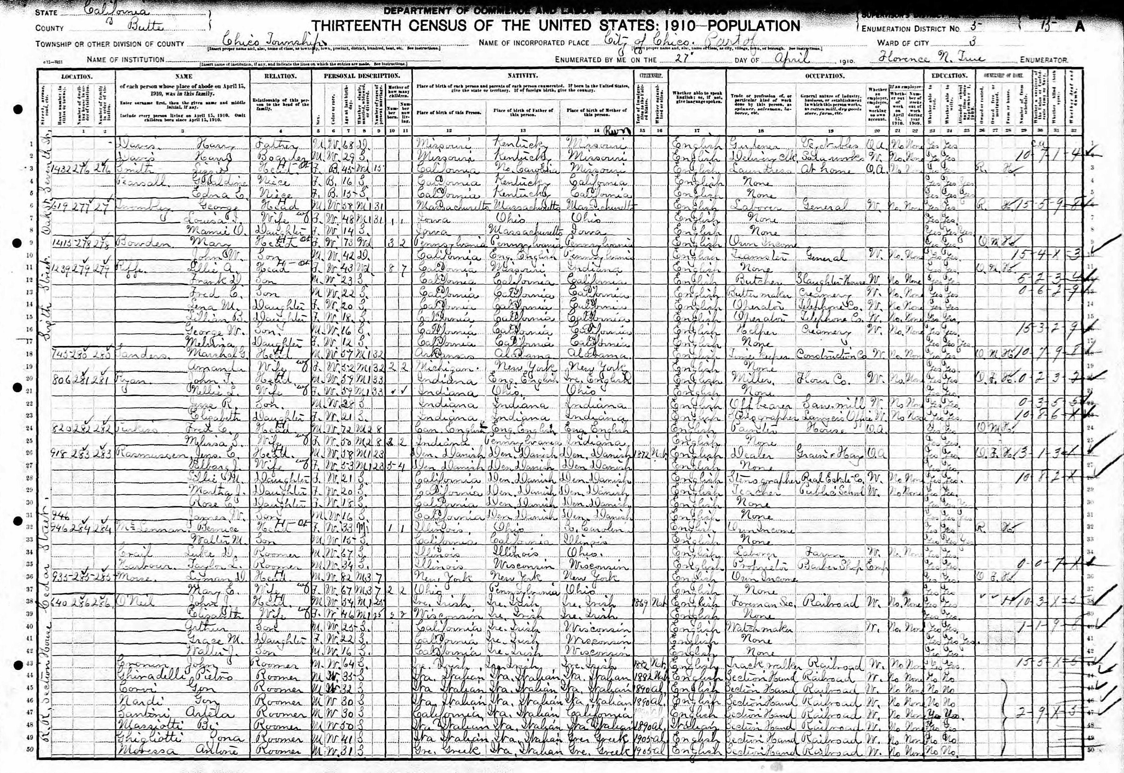 Biagio Mazziotta 1910 Federal Census California, Line 48