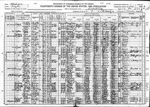 Garofali Family 1920 Federal Census Michigan, Lines 42-48