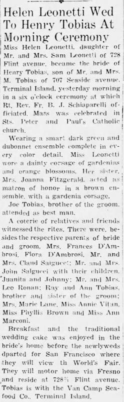 Henry Tobias were married on October 12, 1939 in Wilimington, Los Angeles, California, USA. She died.