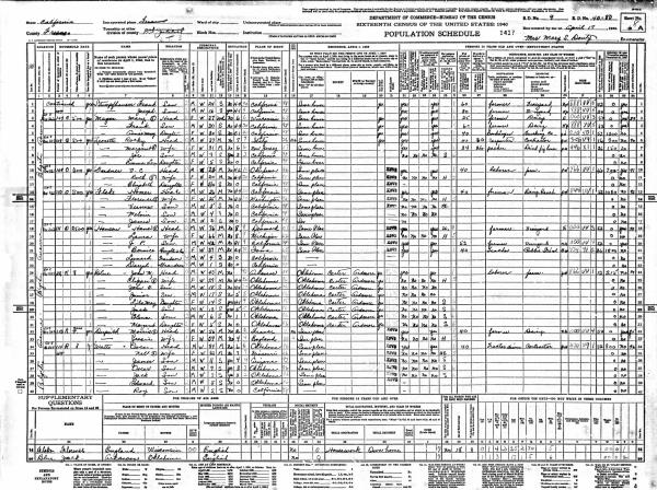 Rapolla Family 1920 Federal Census California, Lines 70-79