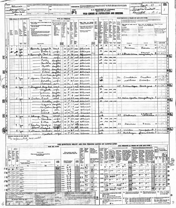 Strawn Family 1950 Federal Census Illnois, Lines 29-30