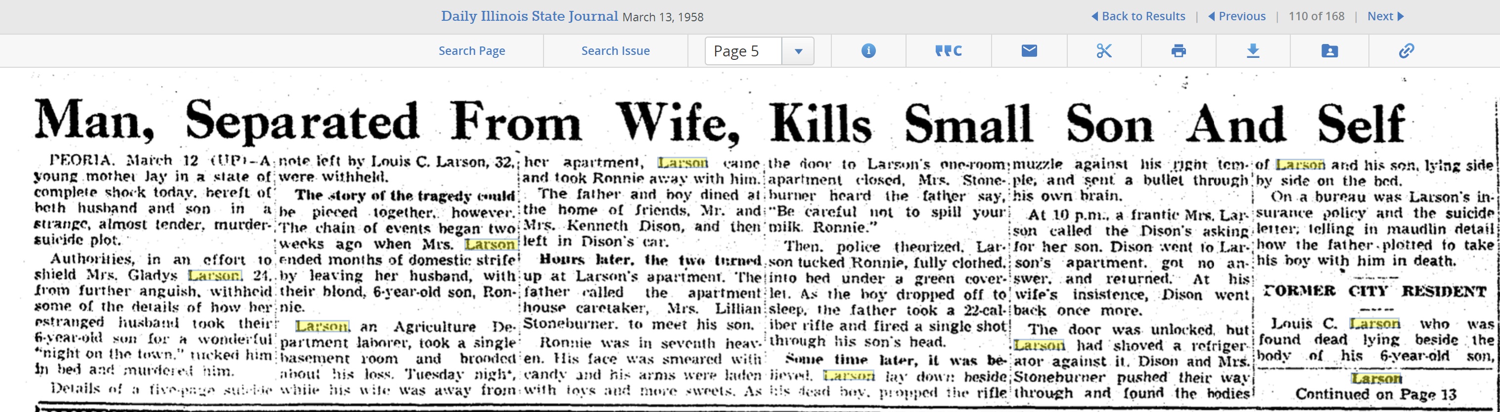 1958 Murder Suicide Article Page 1