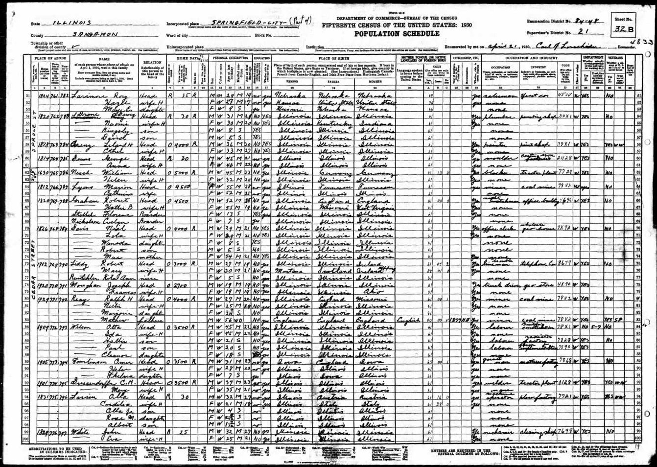 Wilson Family 1930 Federal Census Illinois, Lines 74-83