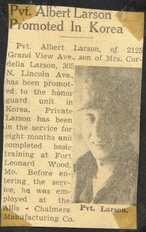 Albert Larson Military Promotion Article
