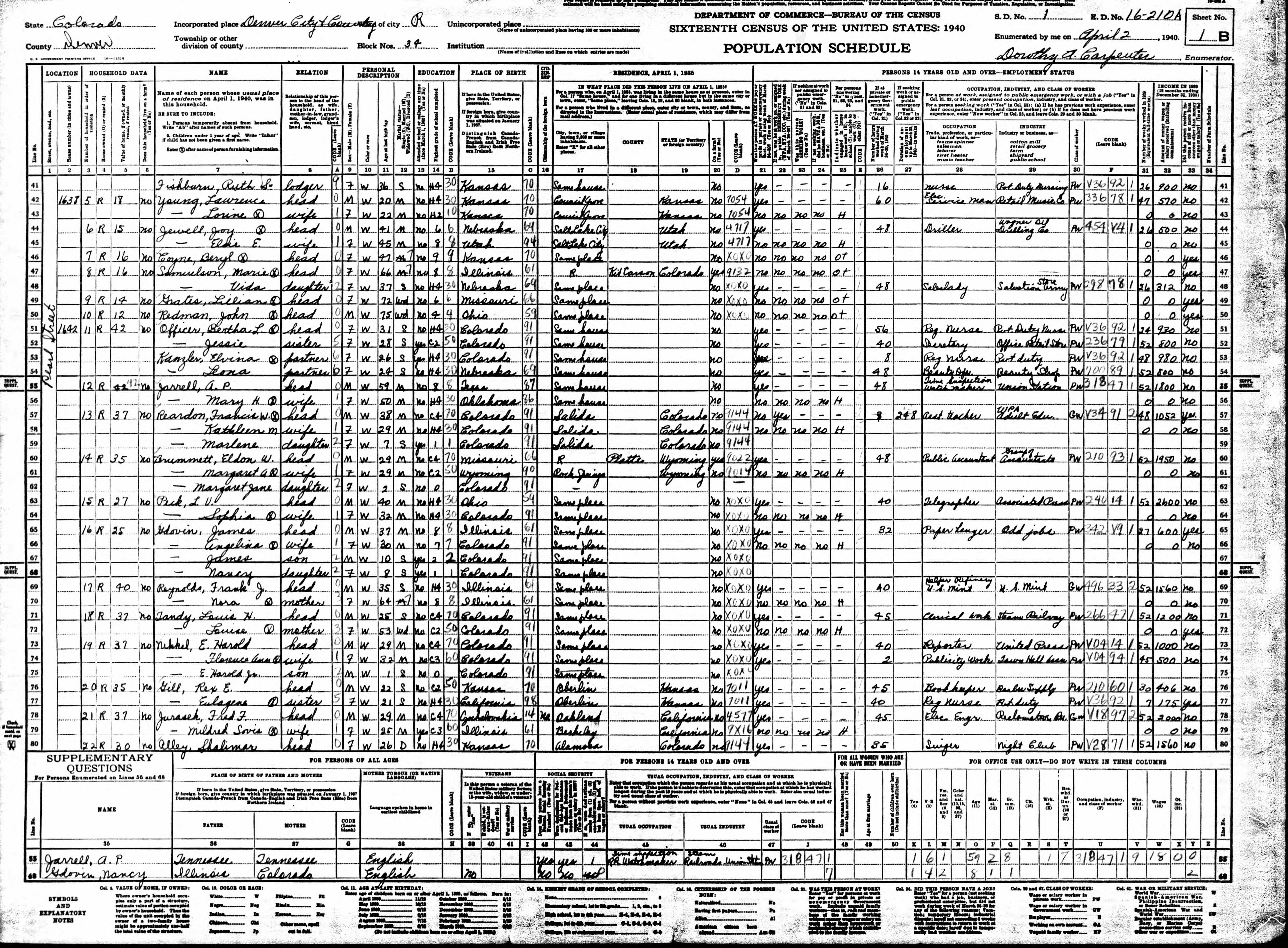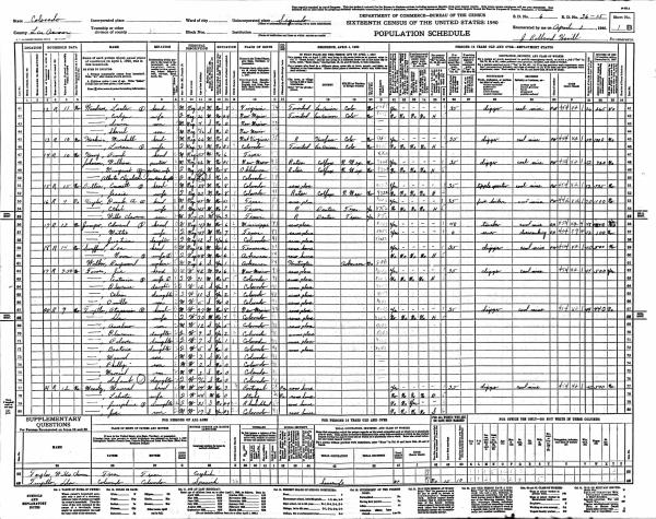 Gdovin Family 1940 Federal Census Colorado, Lines 65-68
