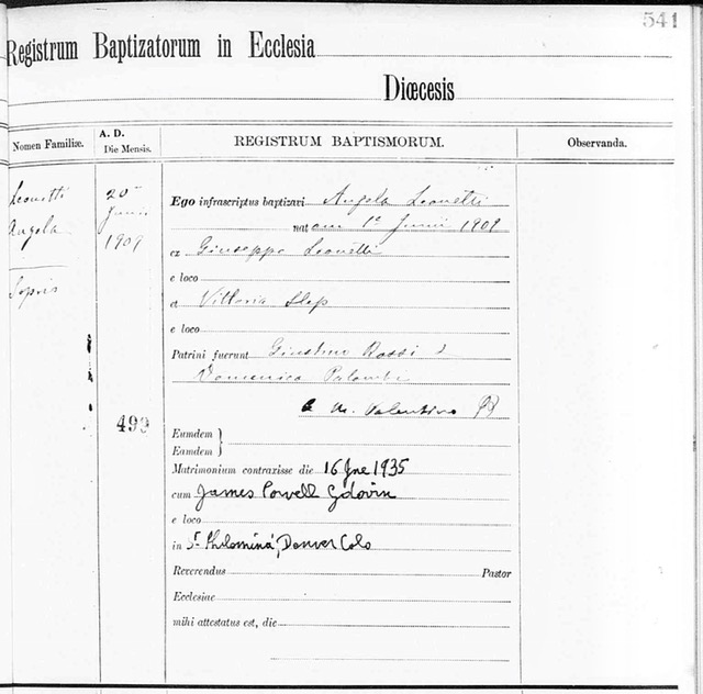 Angelina Leonetti were married on June 16, 1935 in Denver, Colorado, USA. He died.