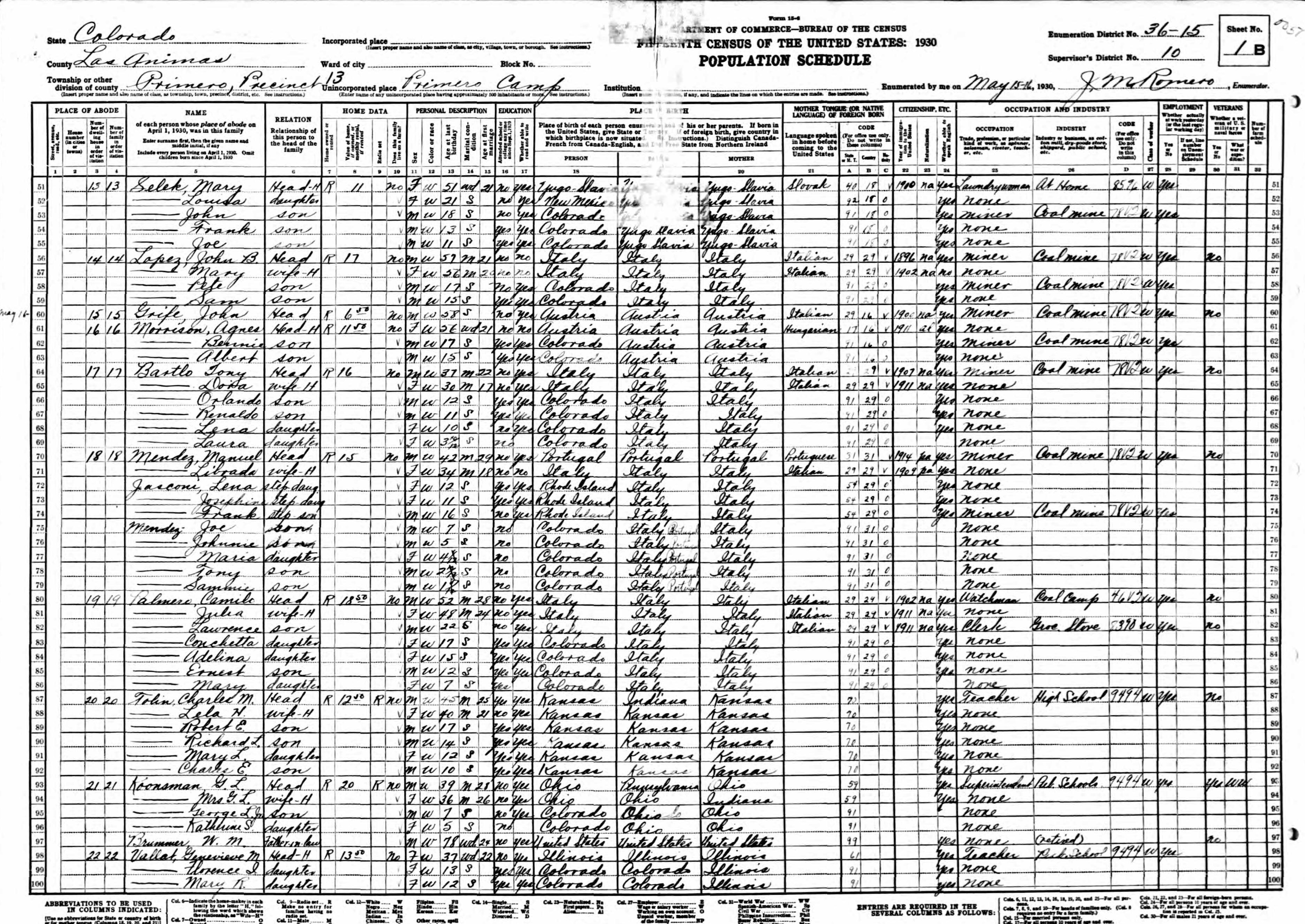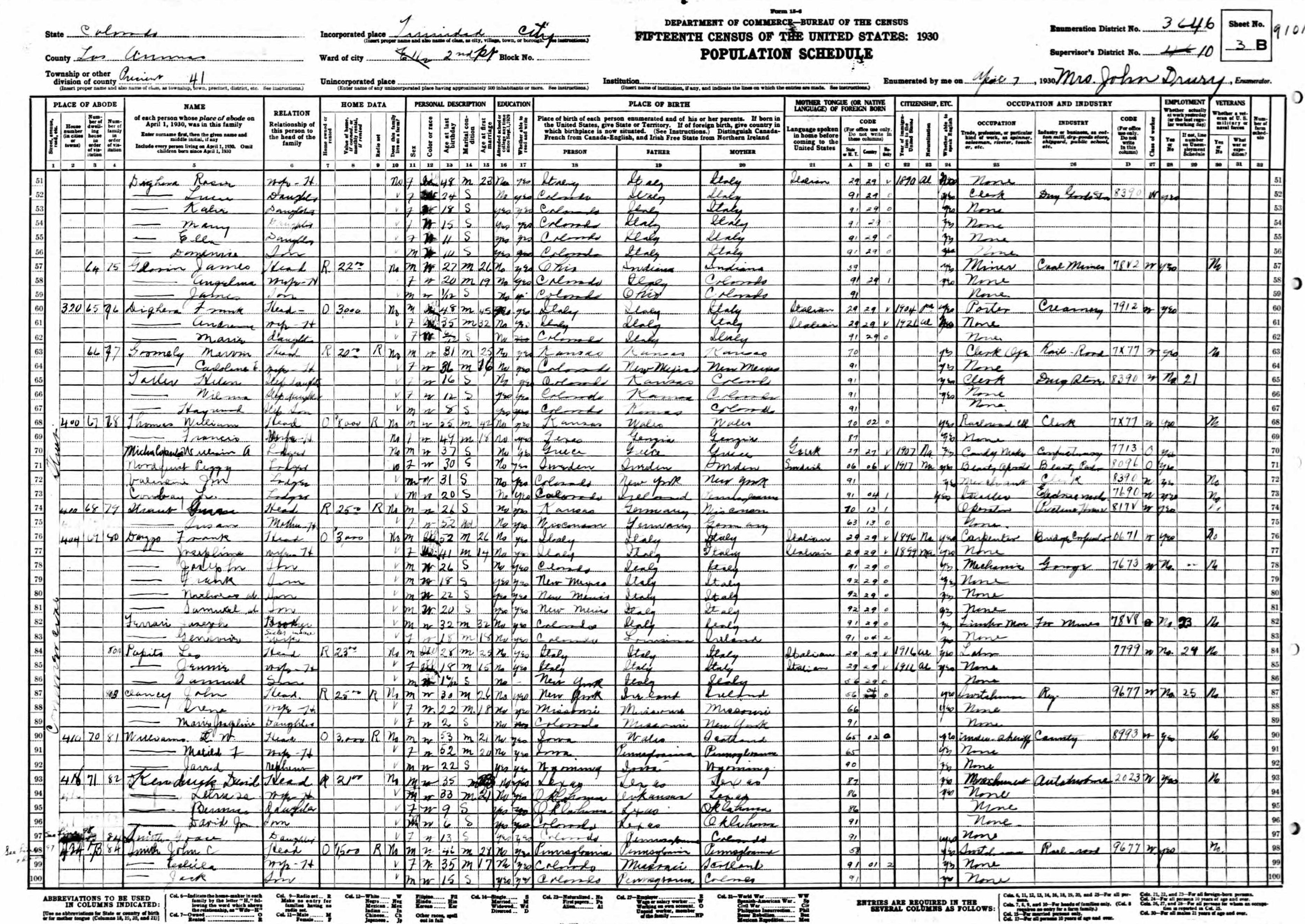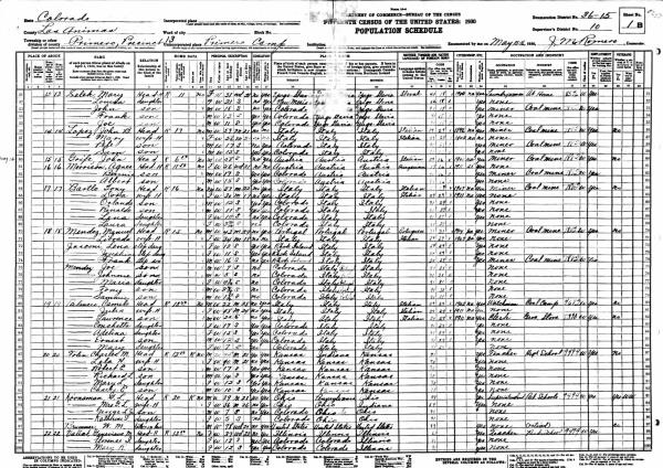 Leonetti Family 1930 Federal Census Colorado, Lines 85-87