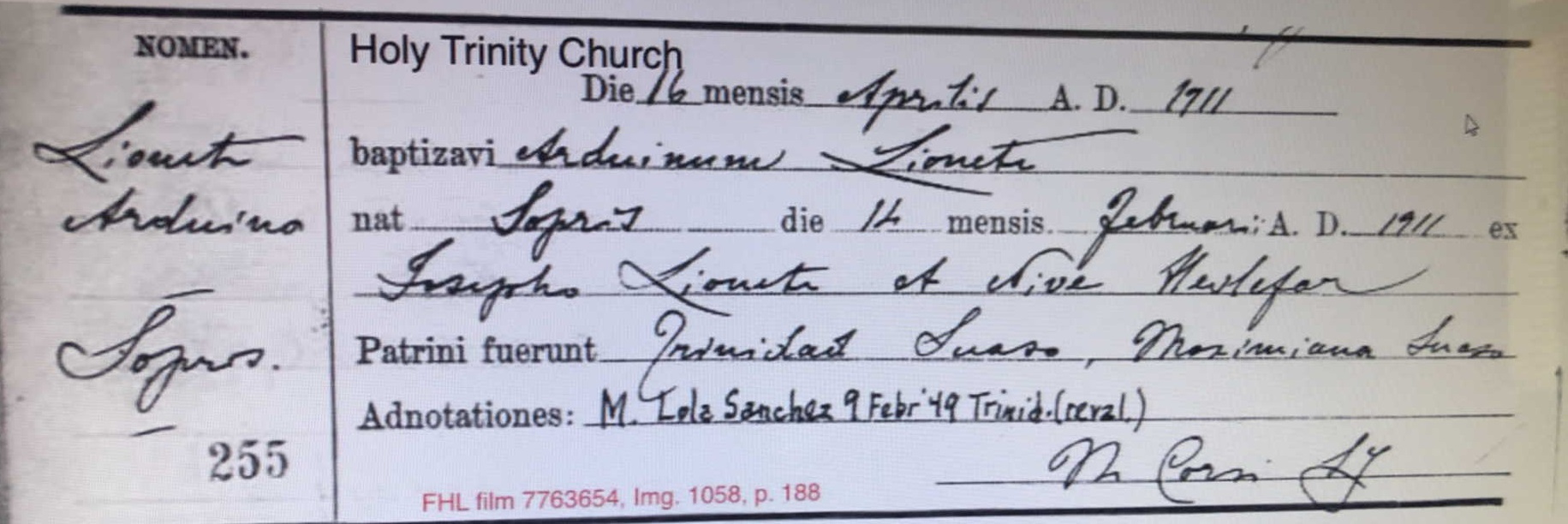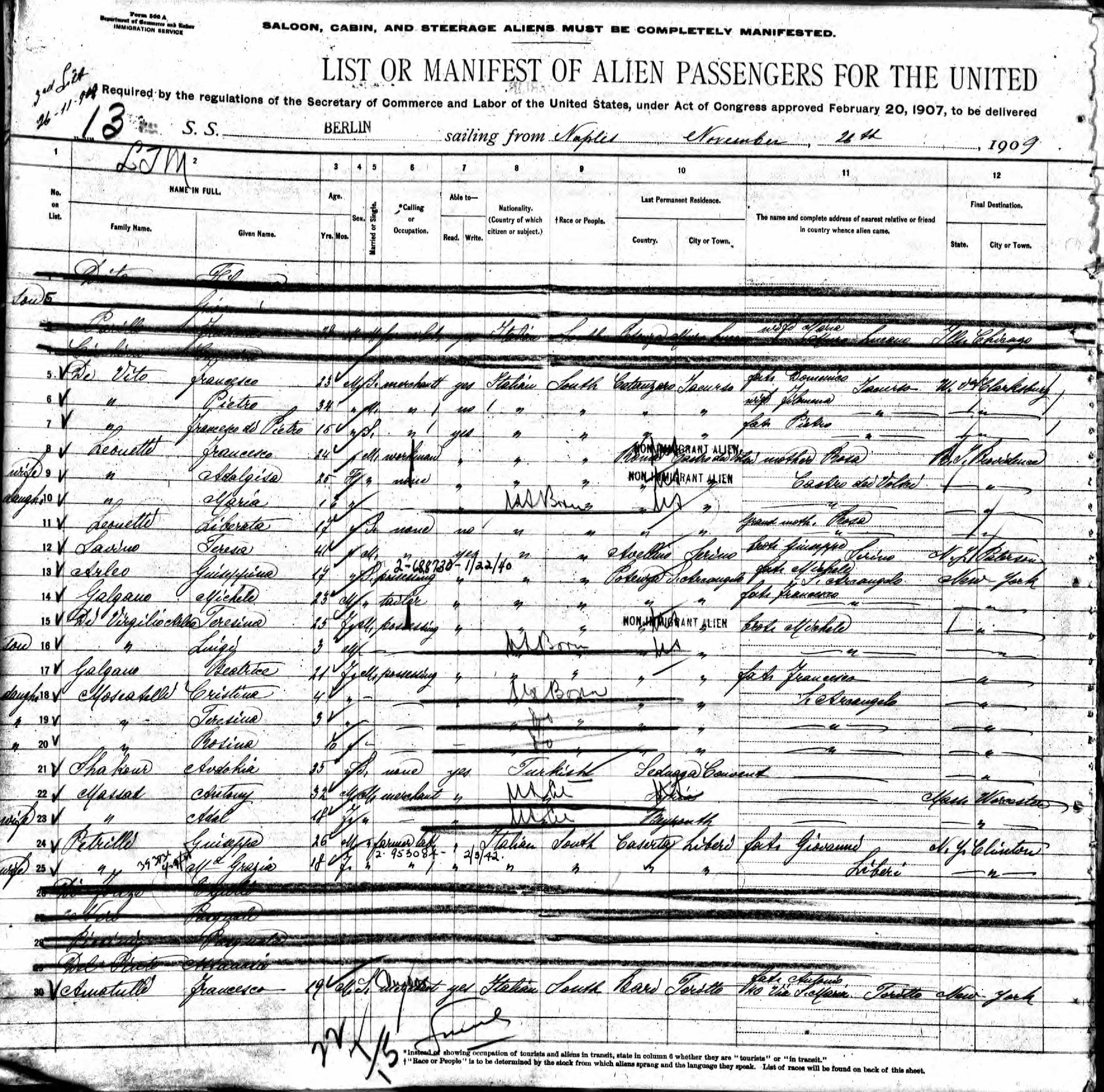 Leonetti Family 1909 Ship Arrival Manifest, Lines 8-11