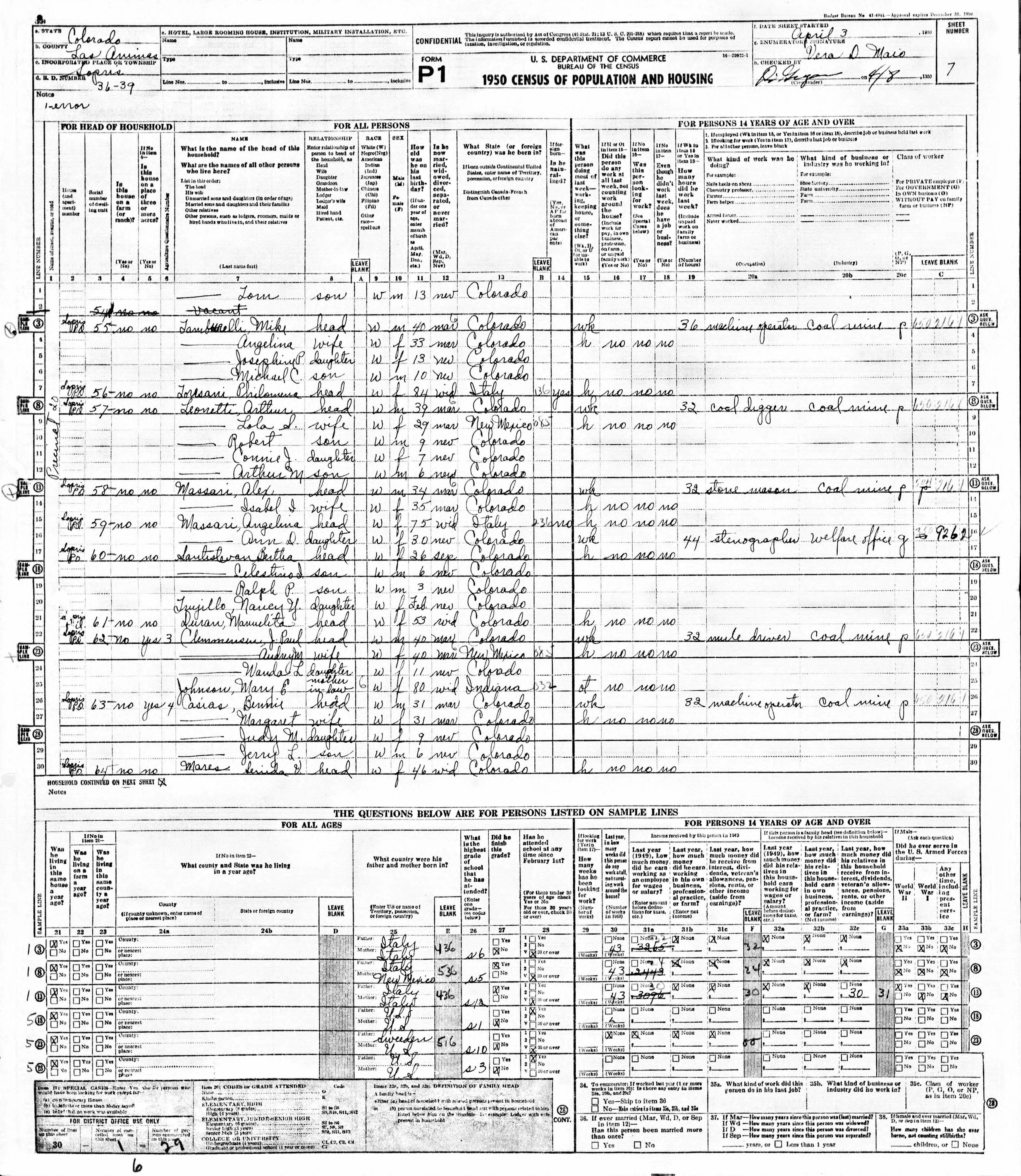 Leonetti Family 1950 Federal Census Colorado, Lines 8-12