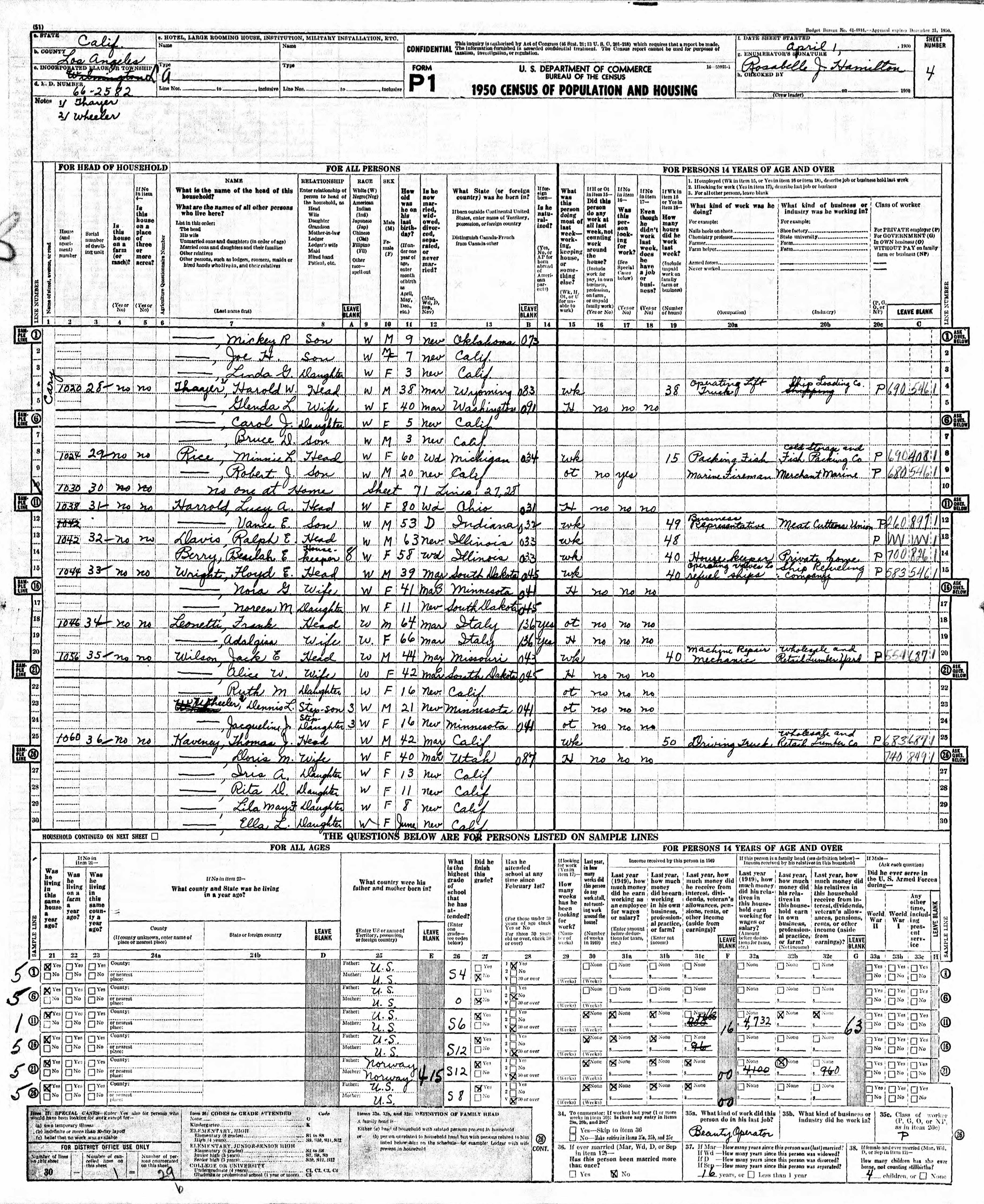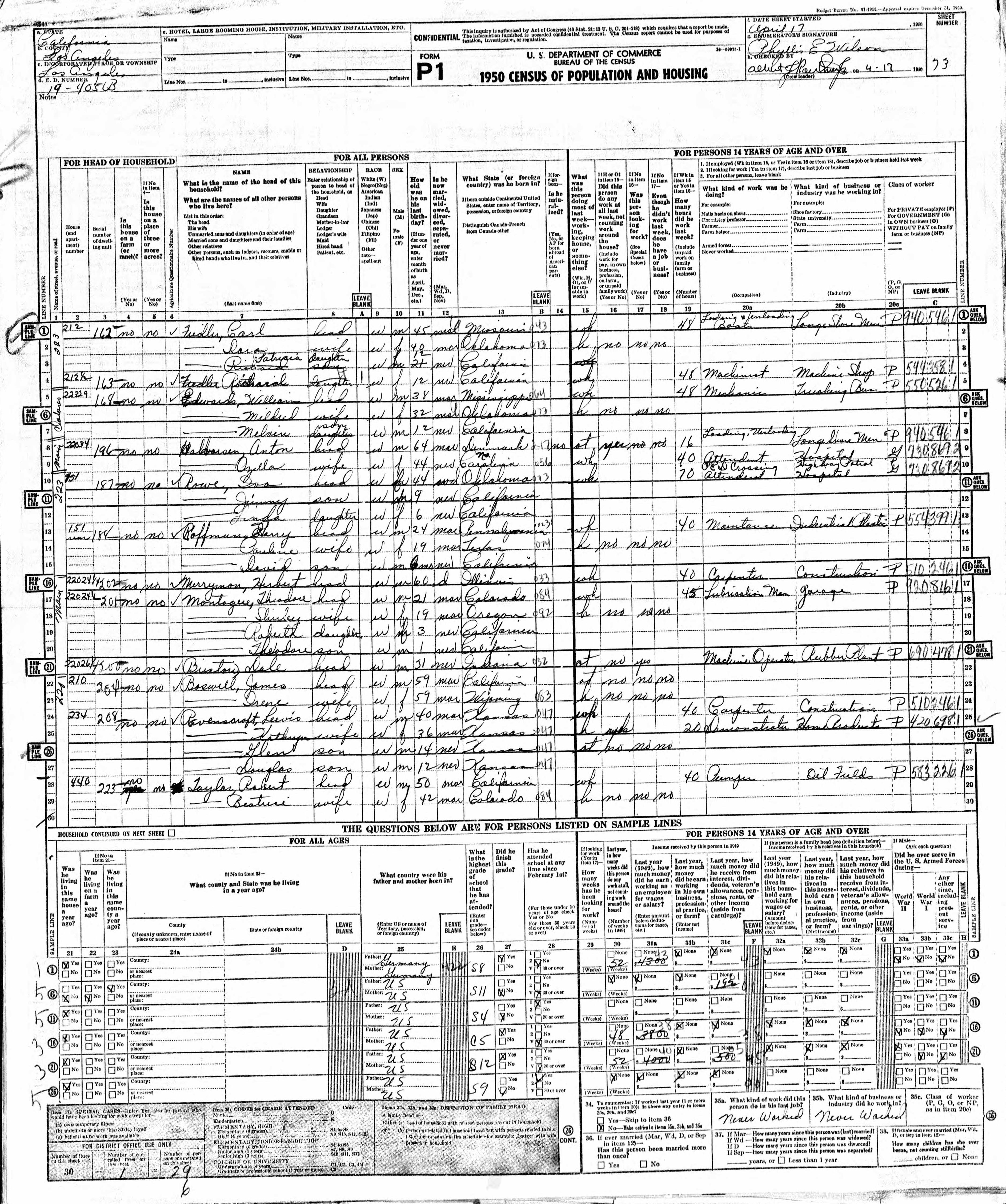 Taylor Family 1950 Federal Census California, Lines 28-29