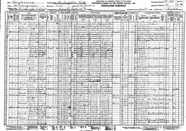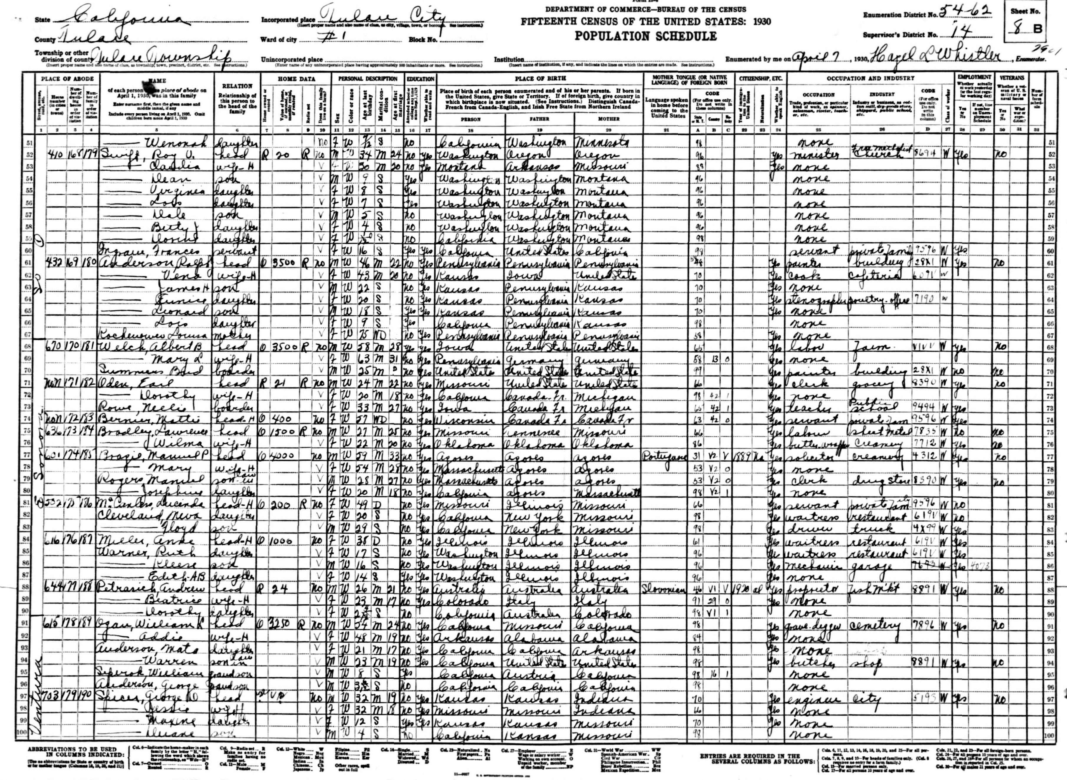 Leonetti Family 1930 Federal Census California, Lines 86-91