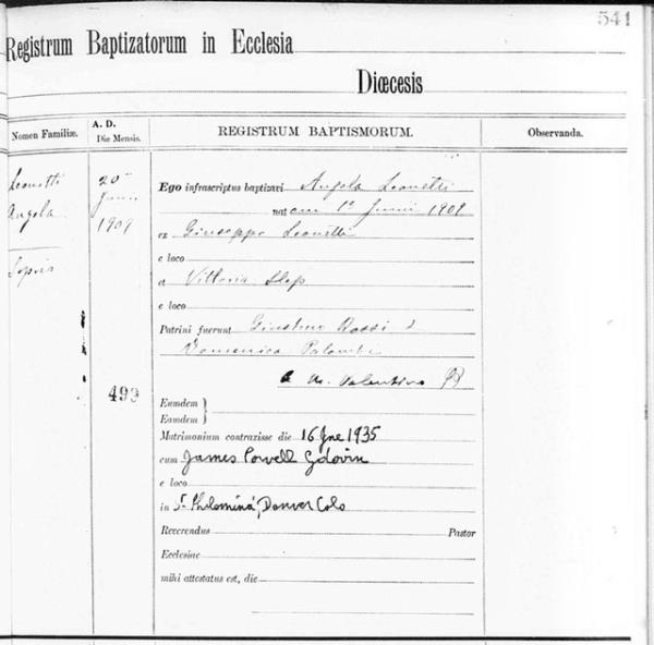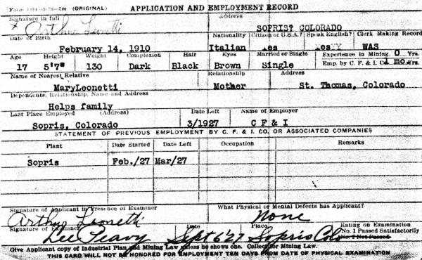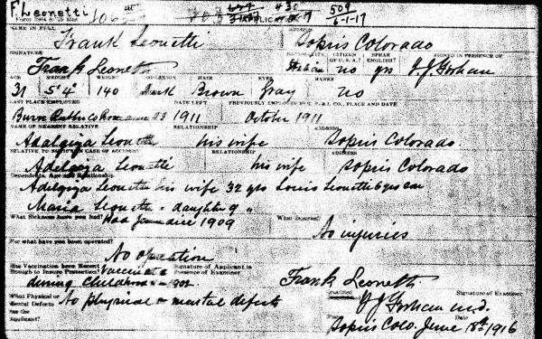 Angelina Leonetti was born on June 1, 1909 in Sopris, Las Animas, Colorado, USA. She and