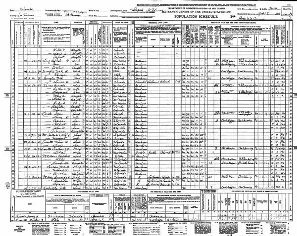 Leonetti Family 1940 Federal Census Colorado, Lines 27-30