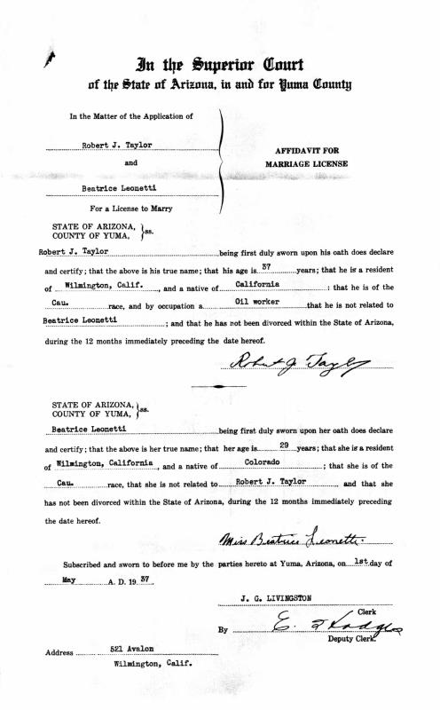 Beatrice Leonetti were married on May 1, 1937 in Yuma, Arizona, USA. He died.