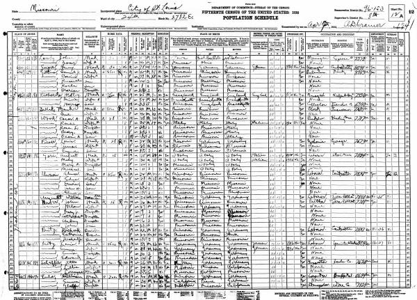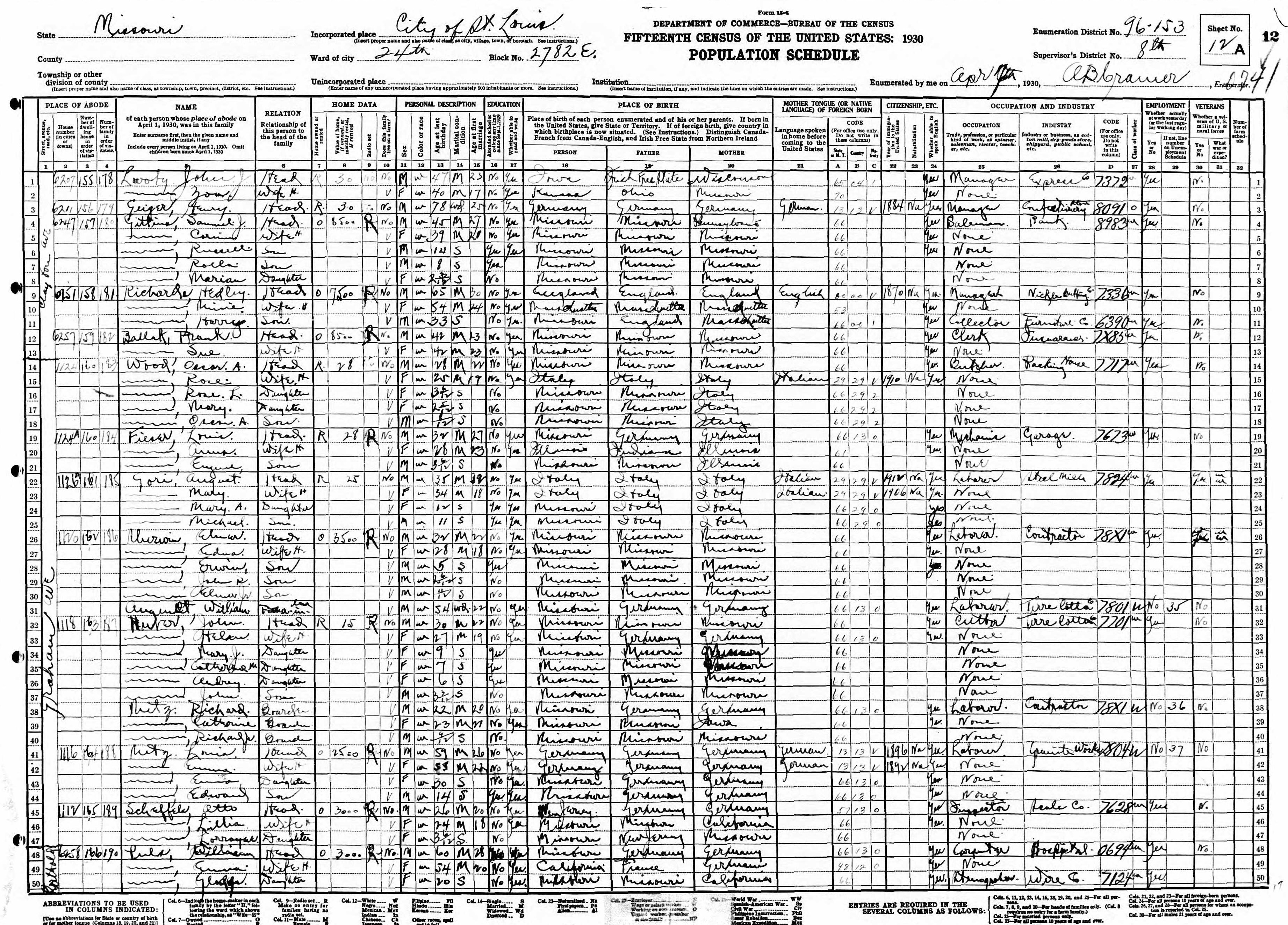 Gori Family 1930 Federal Census Missouri, Lines 22-25