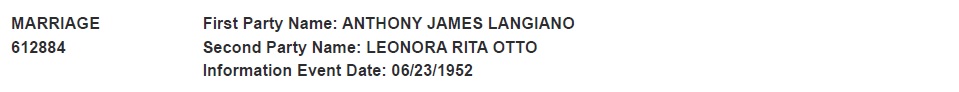 Maria Savina "Irene" Teoro were married on March 12, 1899 in Venosa, Potenza, Basilicata, Italy. He died on June 26, 1954, at age 75, in Fresno, California, USA. He was buried in Holy Cross Cemetery, Fresno, California.