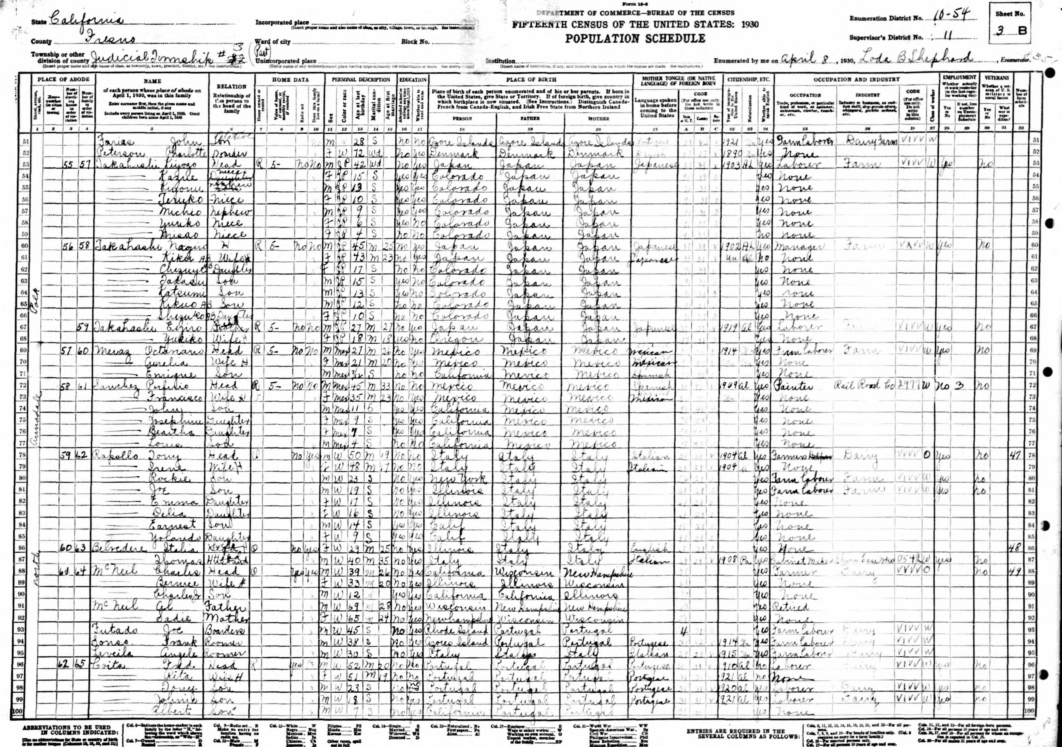 Rapolla Family 1930 Federal Census California, Lines 78-85