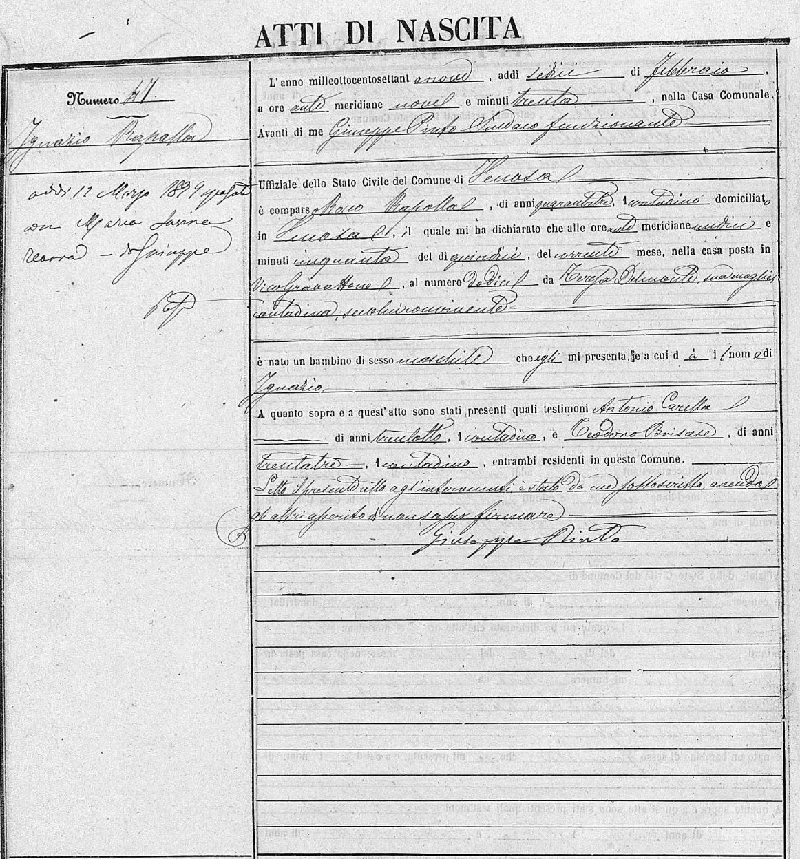 Ignazio Rapolla was born on February 15, 1879 in Venosa, Potenza, Basilicata, Italy. He and