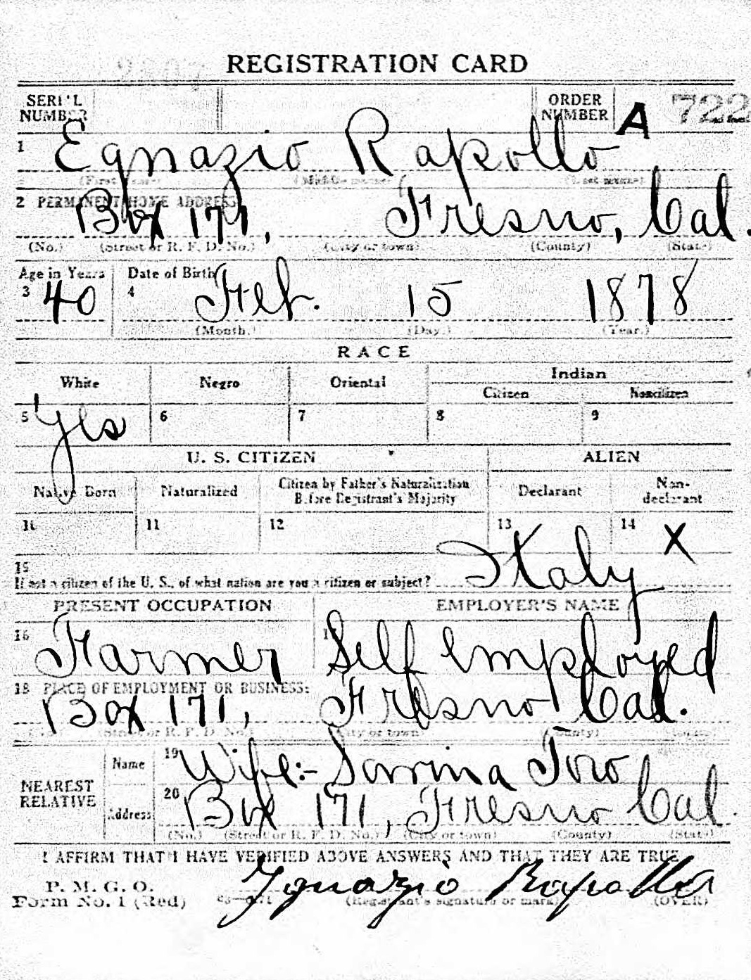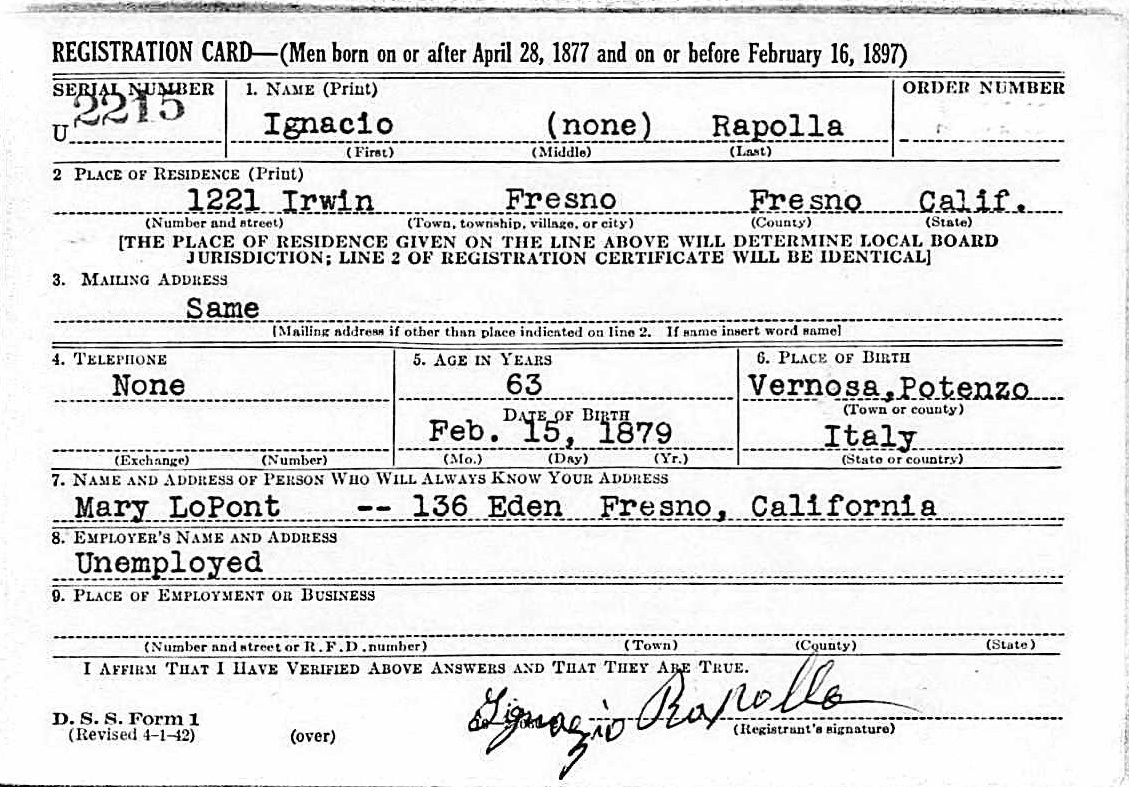 Rapolla Family 1920 Federal Census California, Lines 70-79