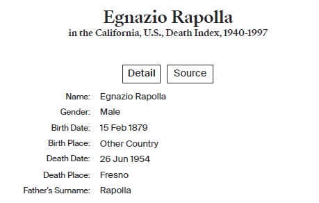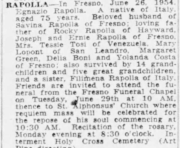 | Son | Rocco Rapolla Born: January 6, 1900 |