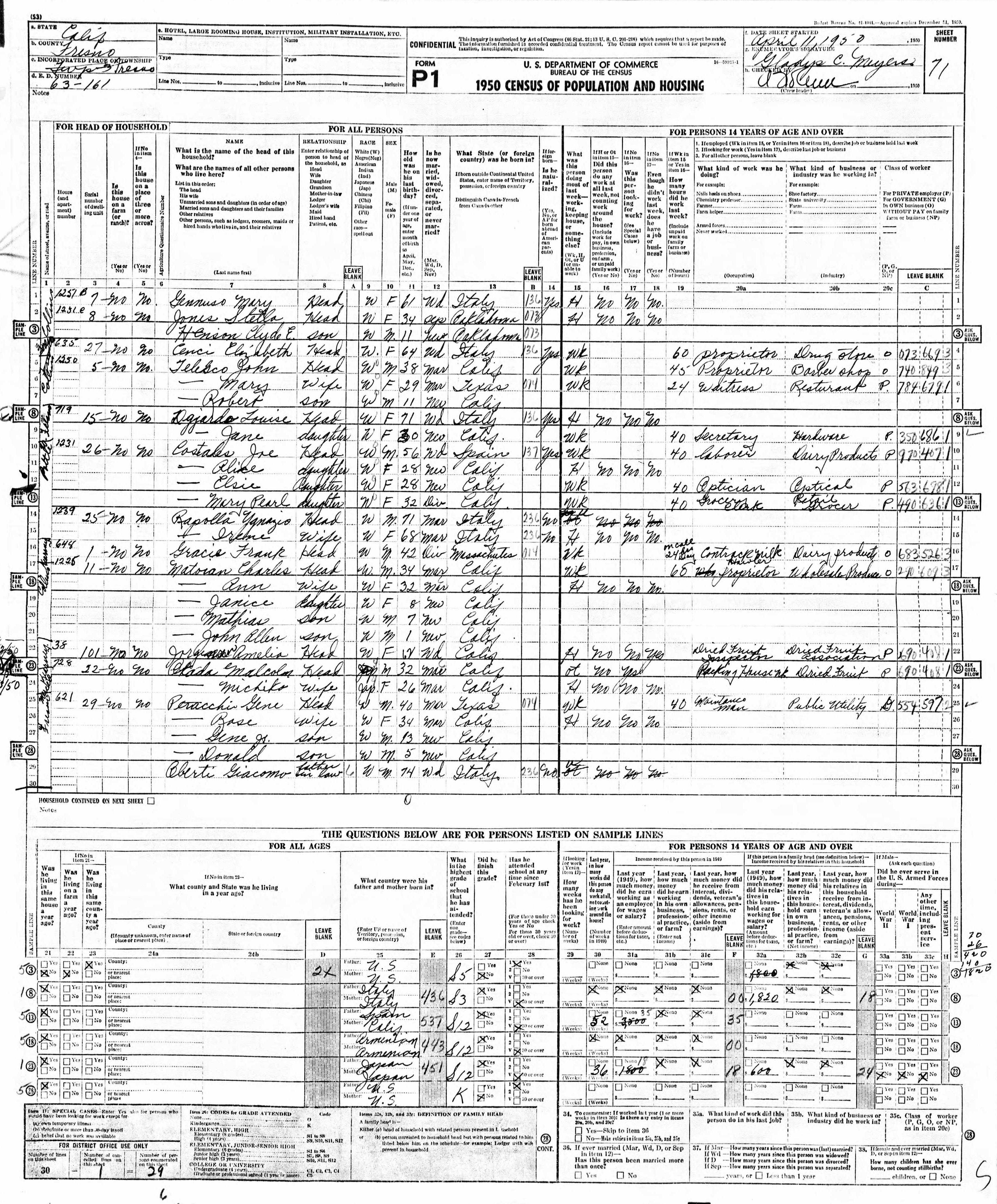 Rapolla Family 1950 Federal Census California, Lines 14-15