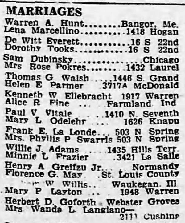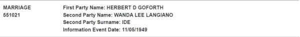 Wanda Lee Ide were married on November 5, 1949 in St. Louis, Missouri, USA. He died.