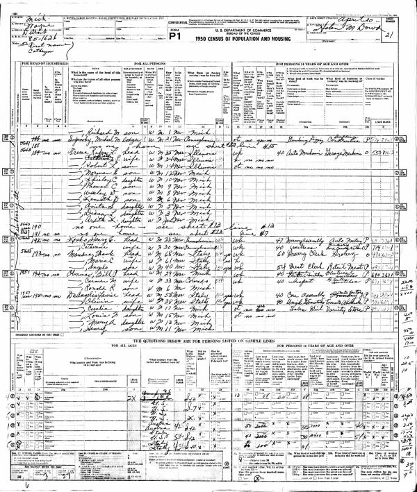 Oberman Family 1950 Federal Census Michigan, Lines 22-24