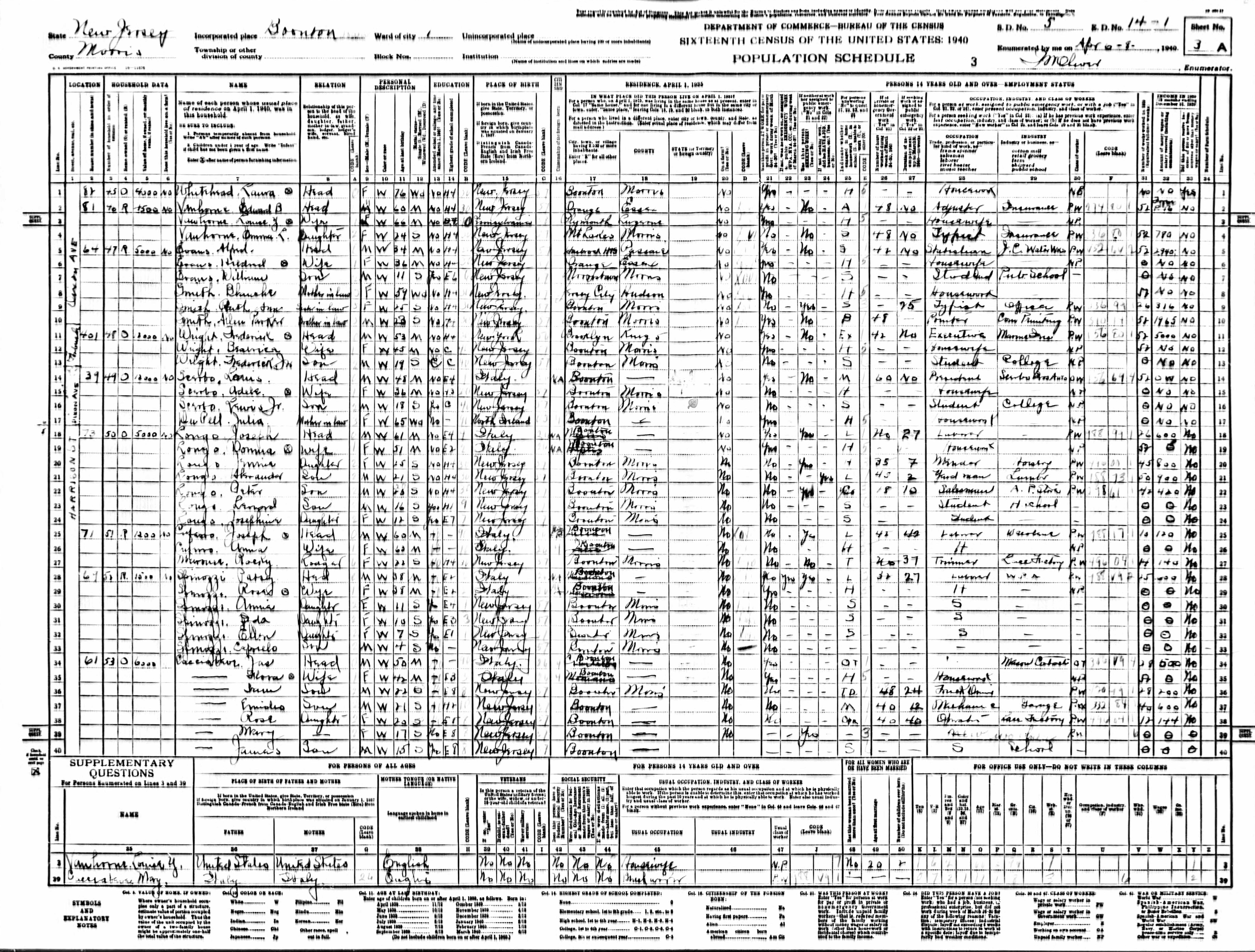 Longo Family 1940 Federal Census New Jersey, Lines 18-24