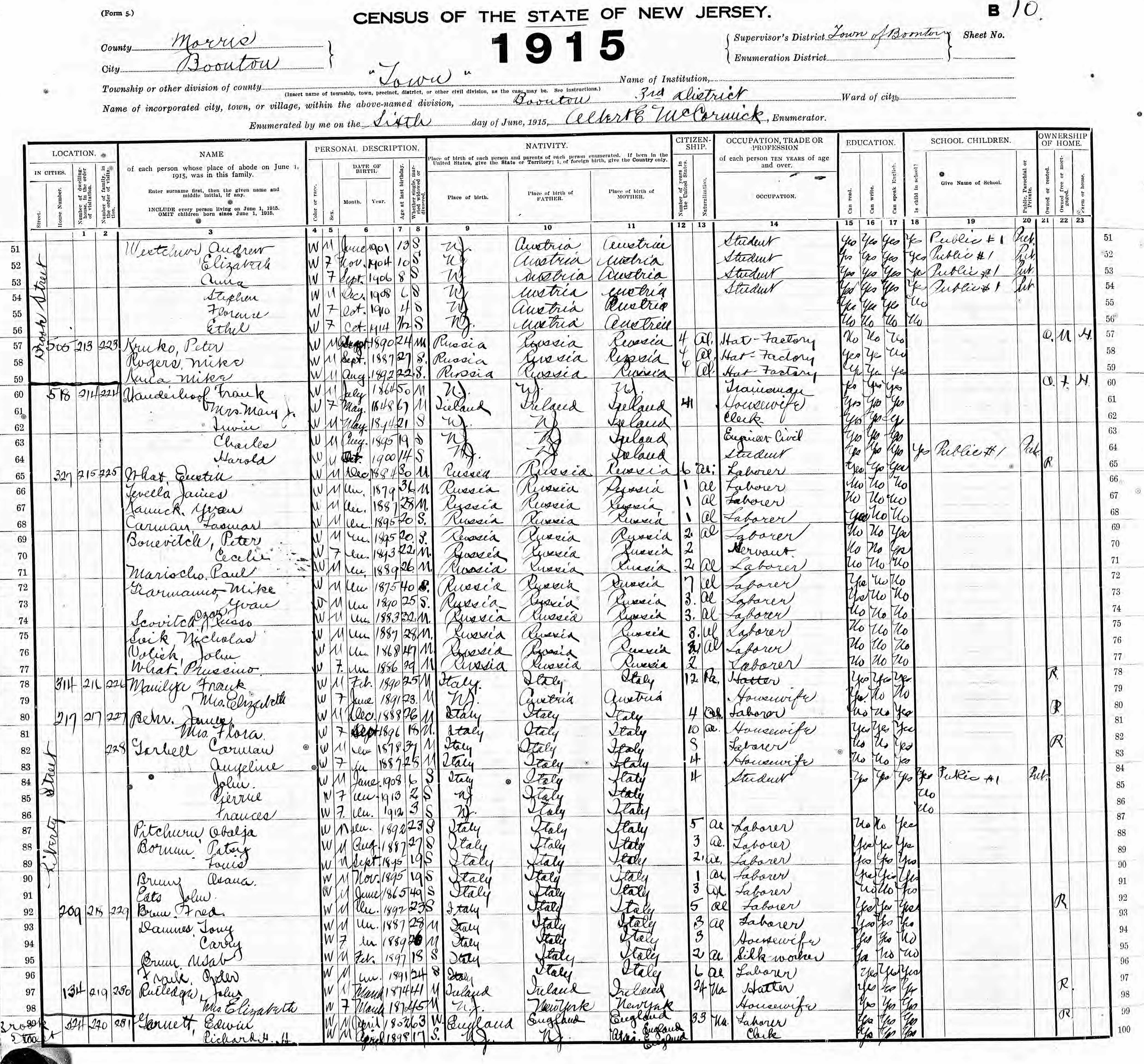 Longo Family 1915 State Census New Jersey, Lines 67-79