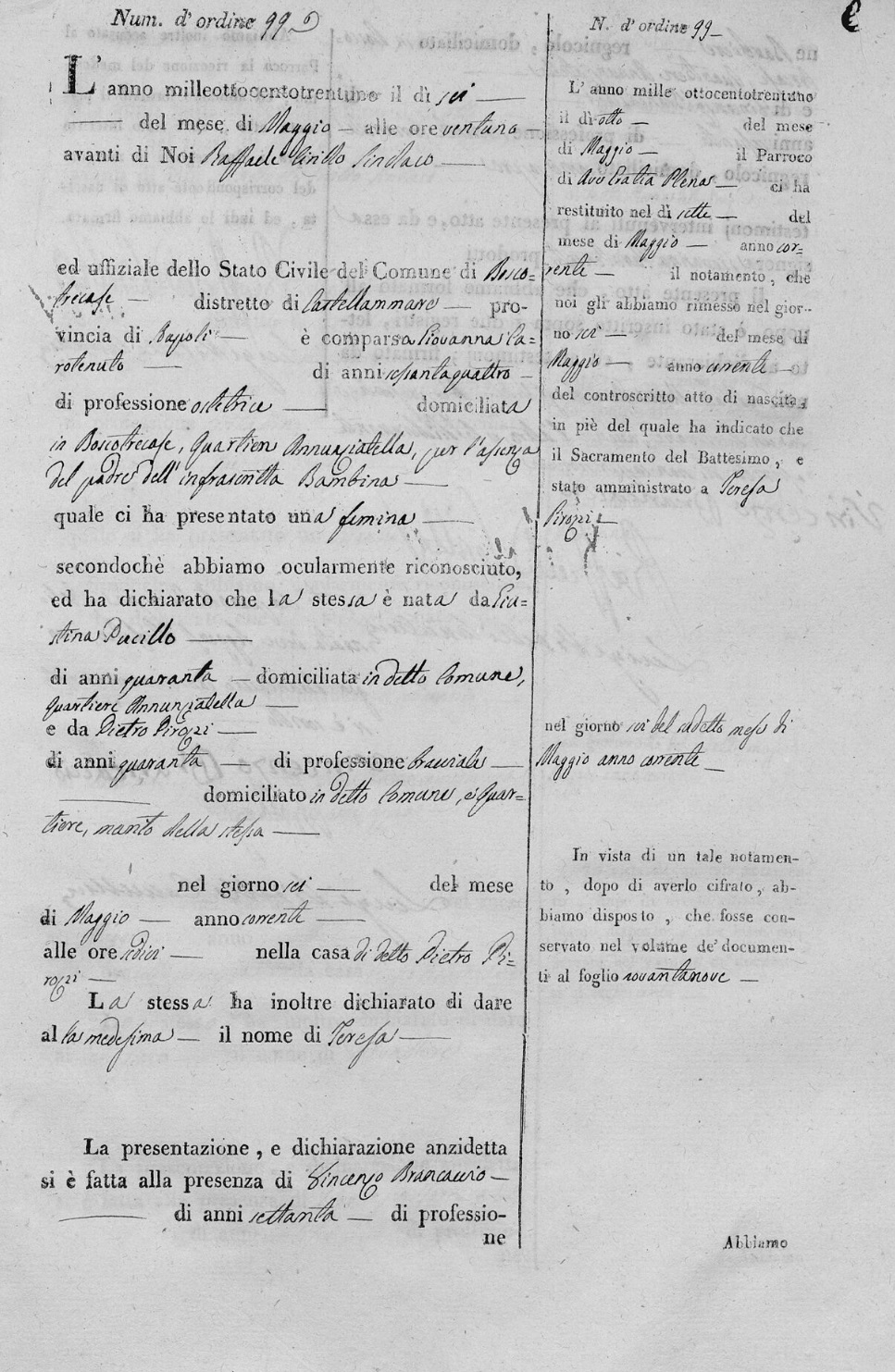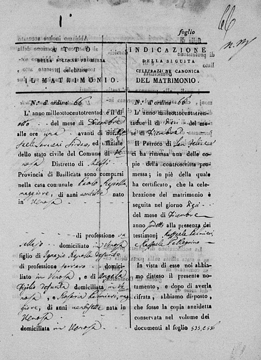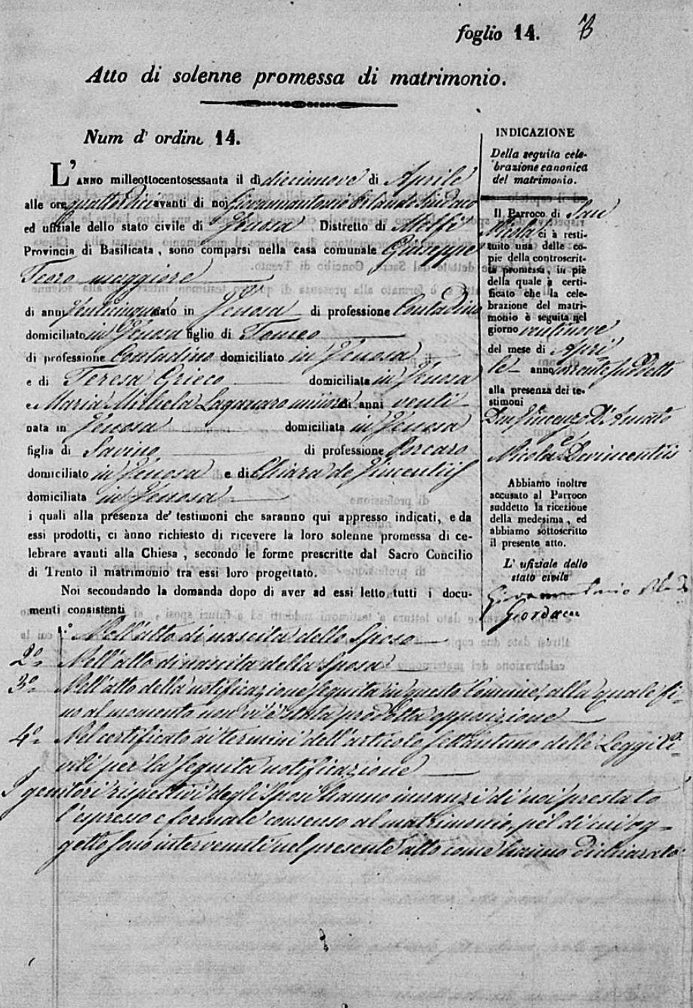 Teresa Grieco were married on November 23, 1819 in Venosa, Potenza, Basilicata, Italy. He died.