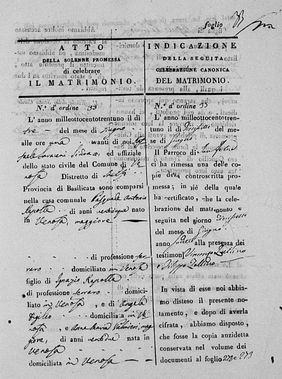 Pasquale Antonio Rapolla were married on July 17, 1831 in Venosa, Potenza, Basilicata, Italy. She died.