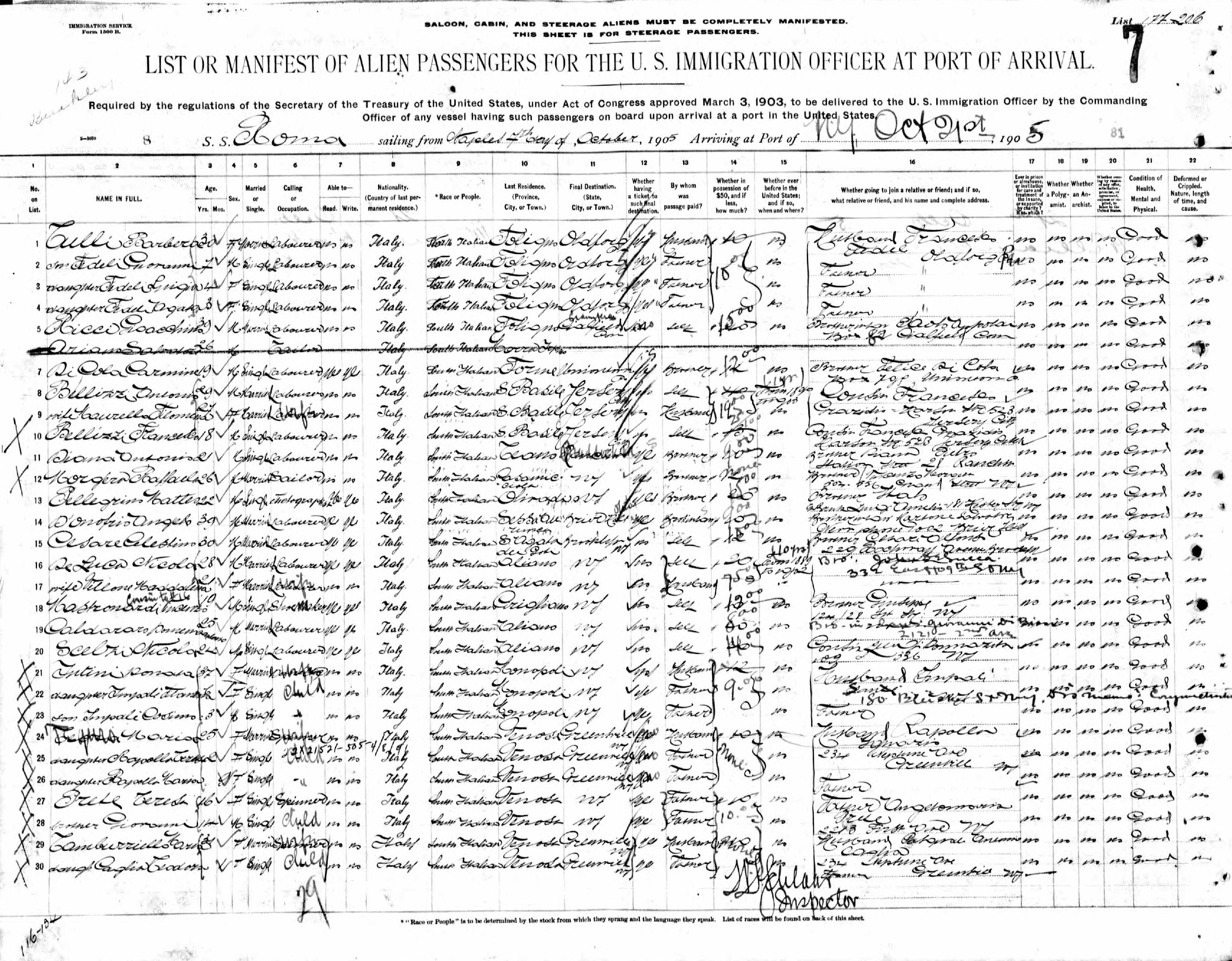 Rapolla Family 1905 Ship Departure Manifest, Lines 24-26