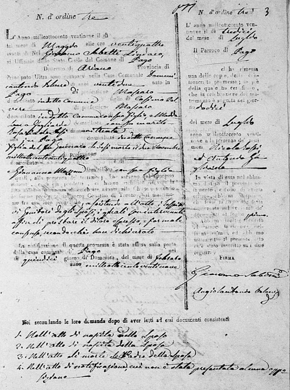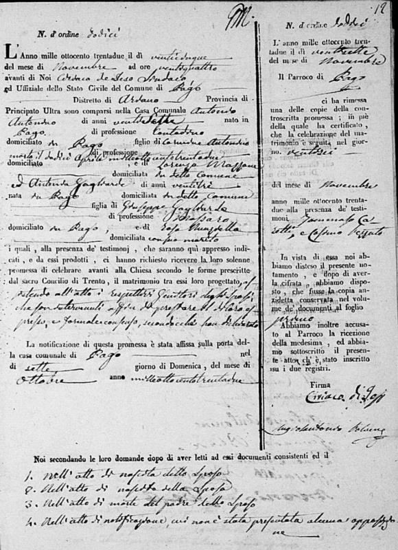 Girolama D'Antonio were married on November 19, 1818 in Pago Veiano, Benevento, Campania, Italy. He and