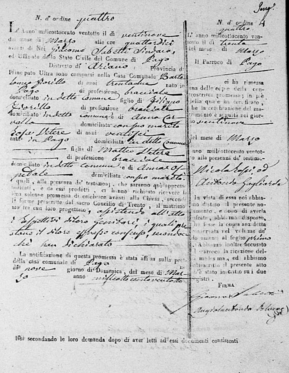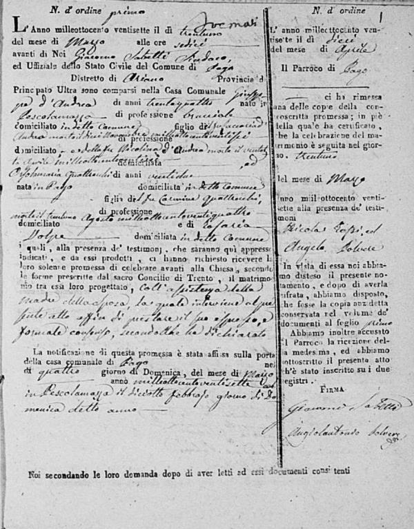 Orsolamaria Quattrocchi were married on March 31, 1827 in Pago Veiano, Benevento, Campania, Italy. He died in Italy.