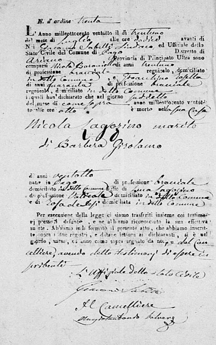Nicola Lagozino was born in 1799 in Pago Veiano, Benevento, Campania, Italy. He and