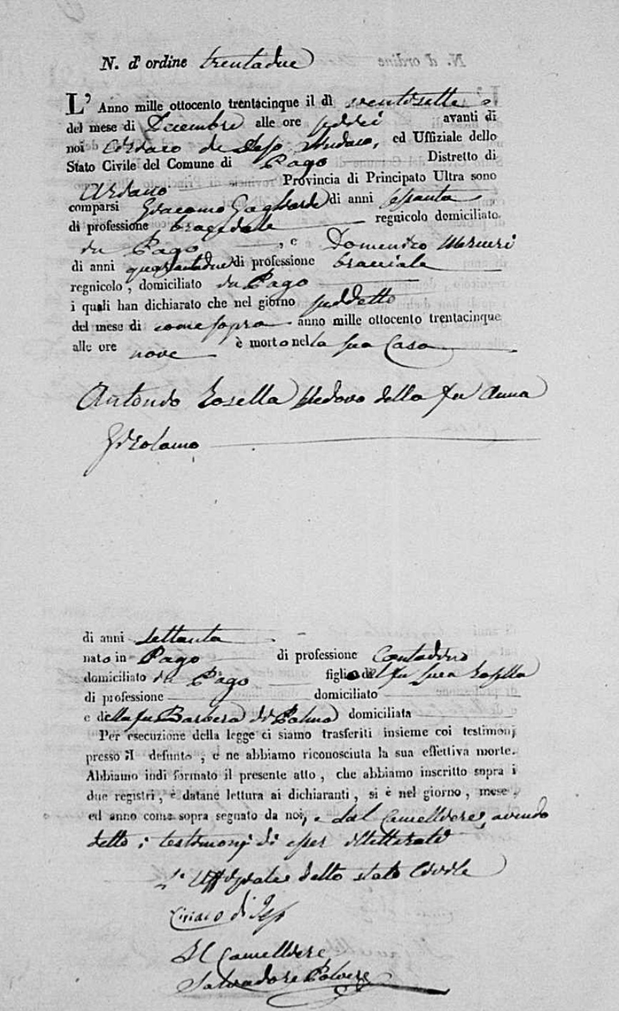 Anna Girolamo were married. He died on December 27, 1835, at age ~70, in Pago Veiano, Benevento, Campania, Italy.