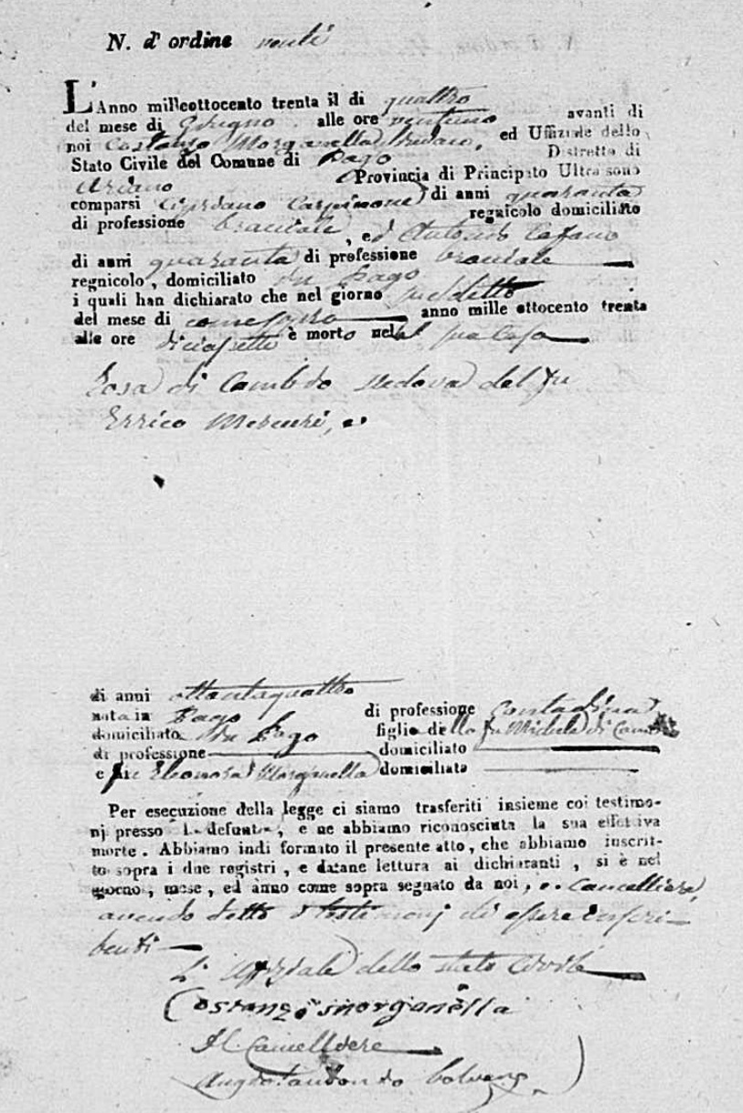 Rosa Constantino were married. He died on December 15, 1835, at age ~80, in Pago Veiano, Benevento, Campania, Italy.