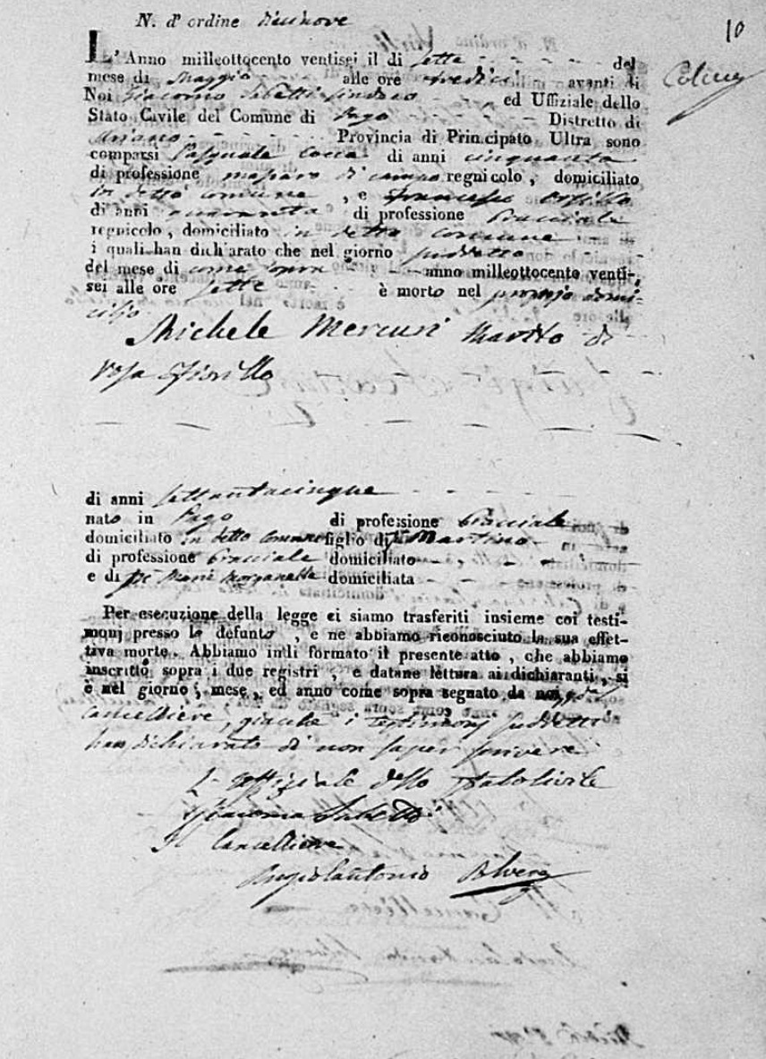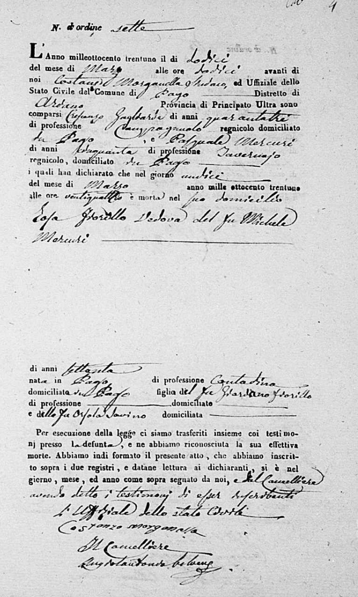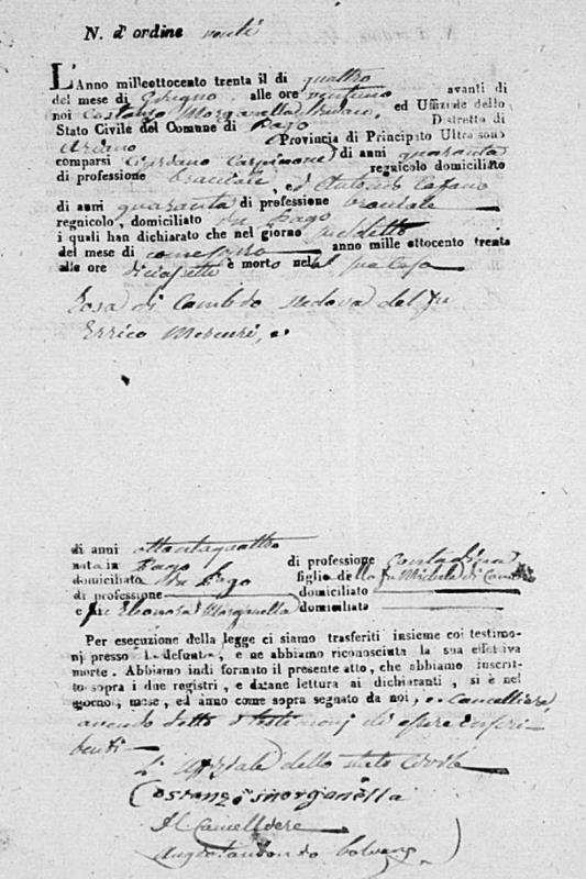 Rosa Vacca were married. He died on September 3, 1825, at age ~73, in Pago Veiano, Benevento, Campania, Italy.