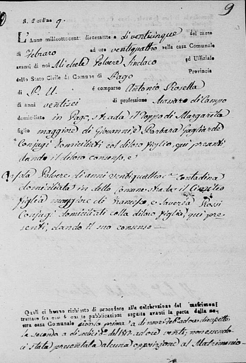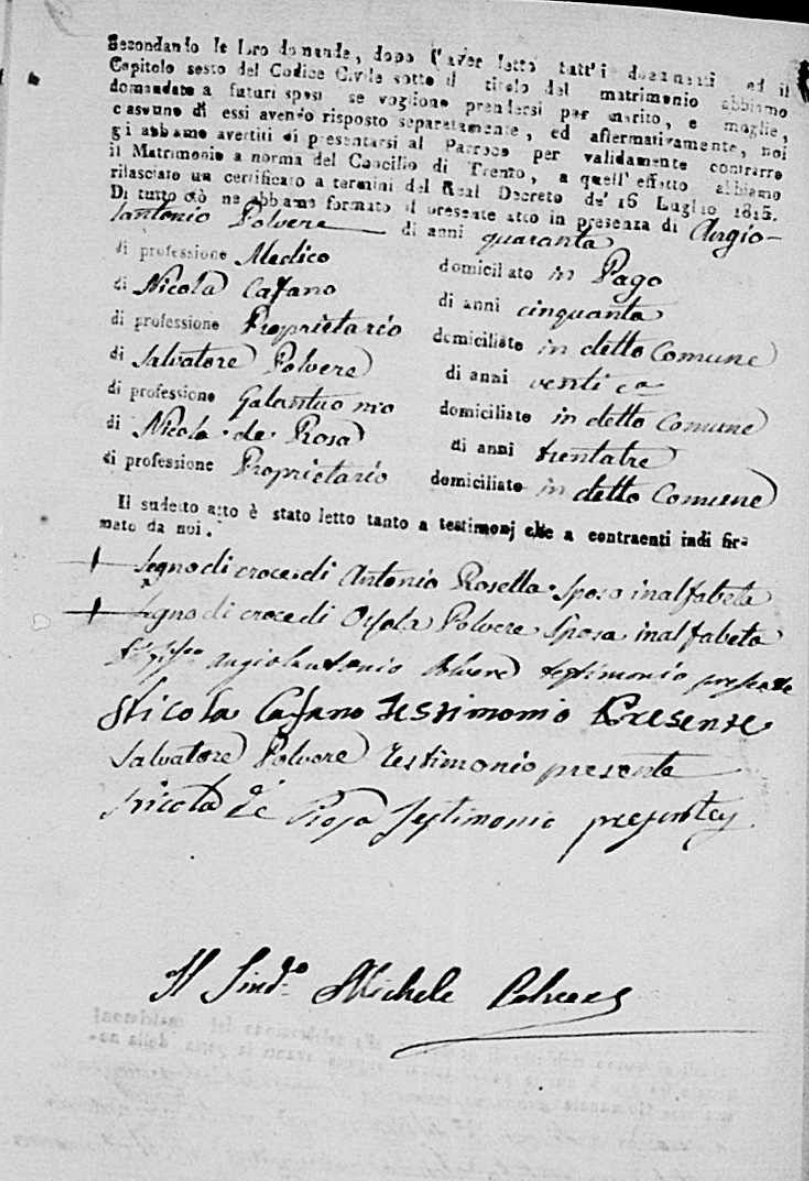 Orsola Polvere were married on February 25, 1817 in Pago Veiano, Benevento, Campania, Italy. He died in Italy.