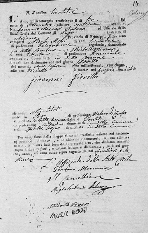 Rosa Fiorillo were married. He died on May 7, 1826, at age ~72, in Pago Veiano, Benevento, Campania, Italy.