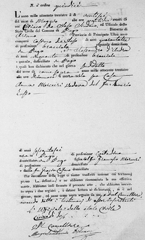 Anna Maria Fiorillo were married. He died on February 14, 1832, at age ~76, in Pago Veiano, Benevento, Campania, Italy.