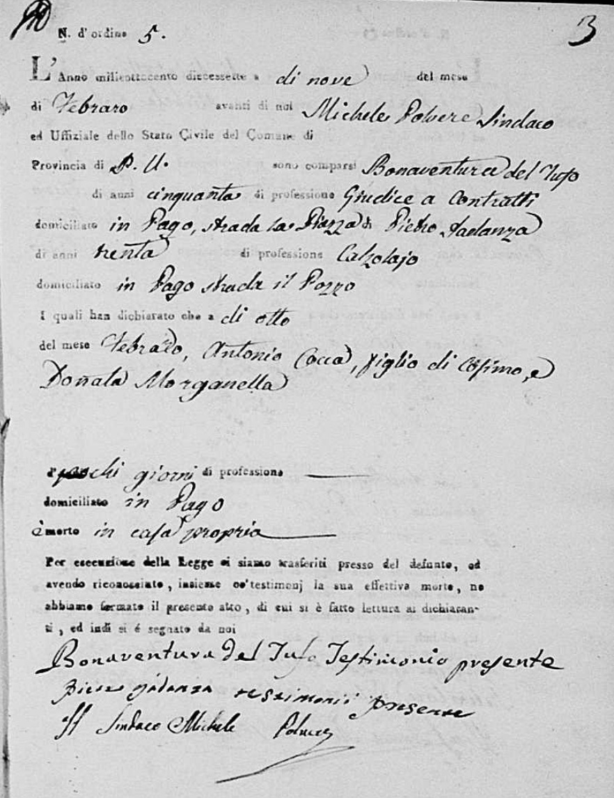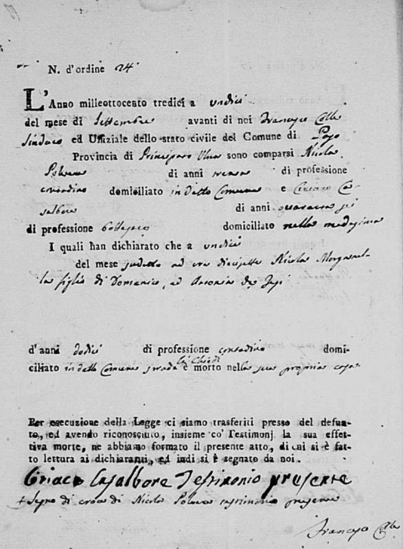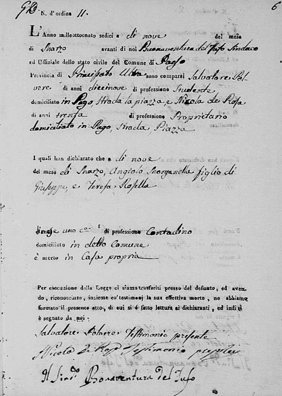 Nicola Morganella was born in 1801 in Pago Veiano, Benevento, Campania, Italy. He died on September 11, 1813, at age ~12, in Pago Veiano, Benevento, Campania, Italy.
