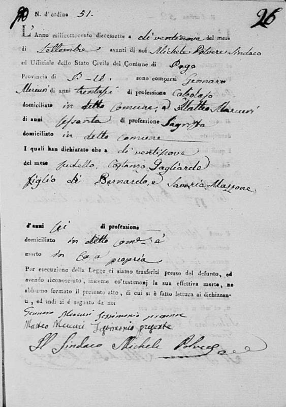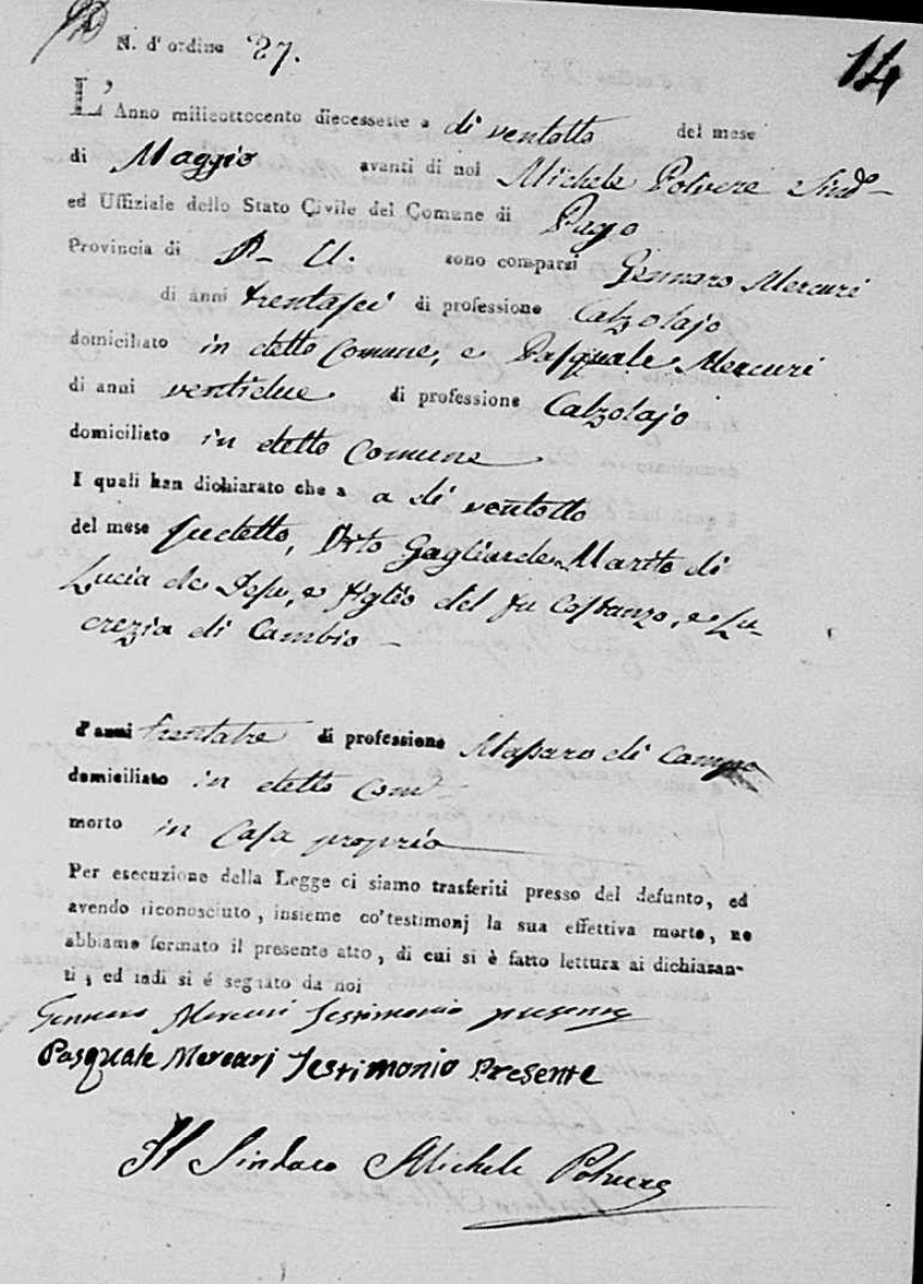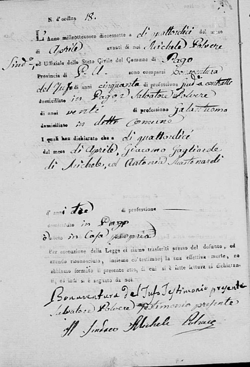 Vito Gagliardi was born in 1784 in Pago Veiano, Benevento, Campania, Italy. He and