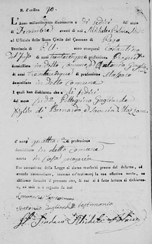 Pellegrino Gagliardi was born in 1813 in Pago Veiano, Benevento, Campania, Italy. He died on December 16, 1817, at age ~4, in Pago Veiano, Benevento, Campania, Italy.