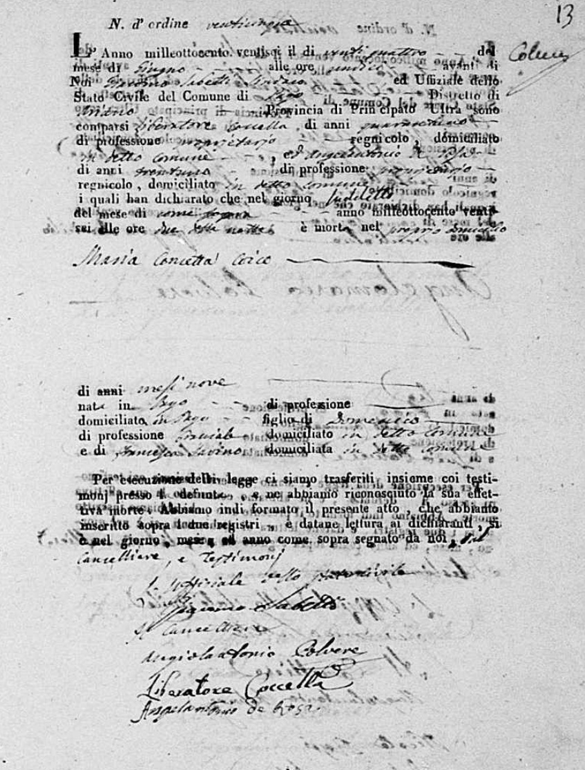 Maria Concetta Coico was born in 1825 in Pago Veiano, Benevento, Campania, Italy. She died on June 24, 1826, at age ~1, in Pago Veiano, Benevento, Campania, Italy.